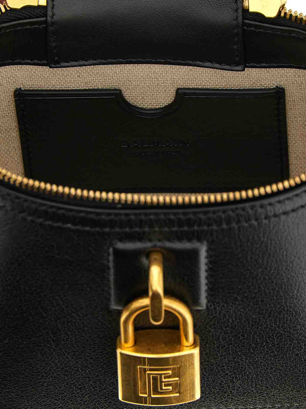 Handtasche von Pulse Vanity aus Kalbsleder mit Vorhängeschloss an der Vorderseite und abnehmbarem seitlichem Metallkarabinerhaken, Reißverschluss, festem Griff, geprägtem Logo auf der Vorderseite, starrer Boden, Leinenfutter, verstellbarem und abnehmbarem Schultergurt.