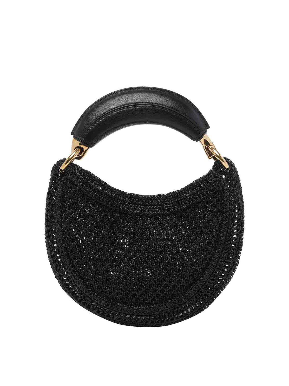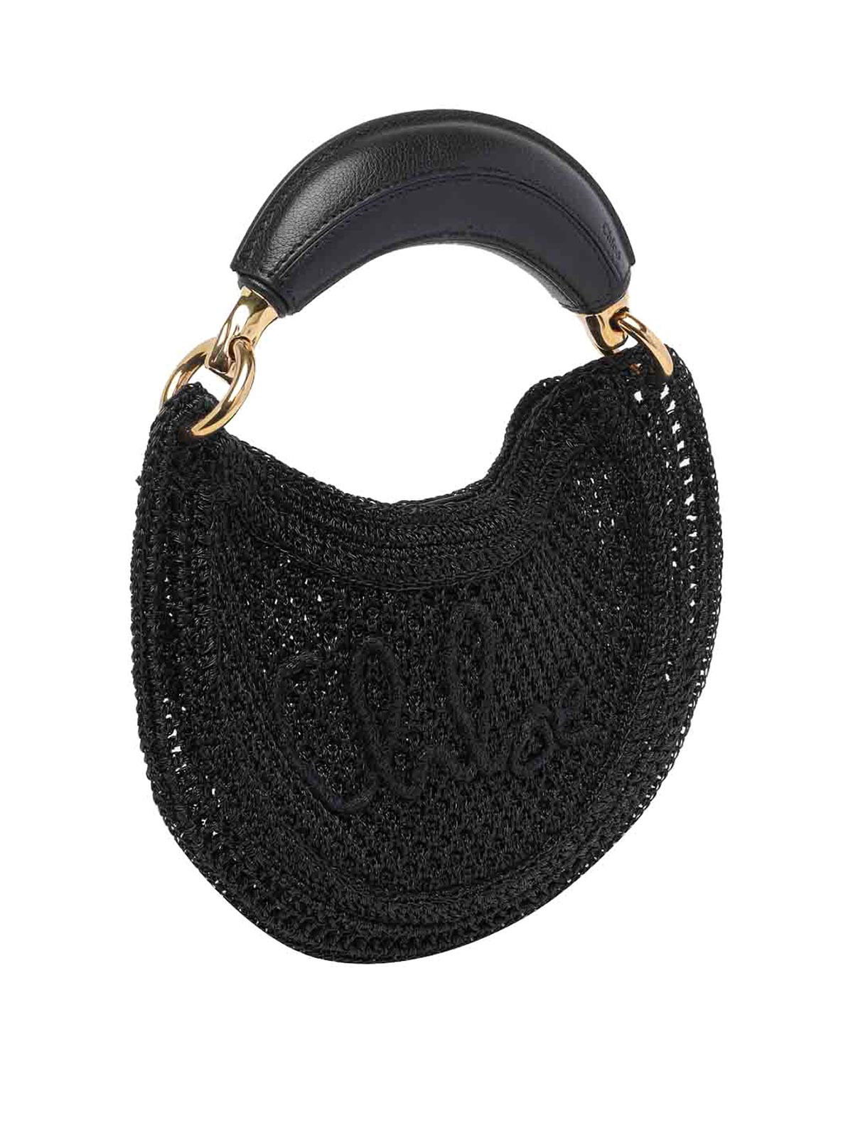Chloe' schwarze Sommer-Bananen-Handtasche, Magnetverschluss, 1 Henkel, Logo auf der Vorderseite