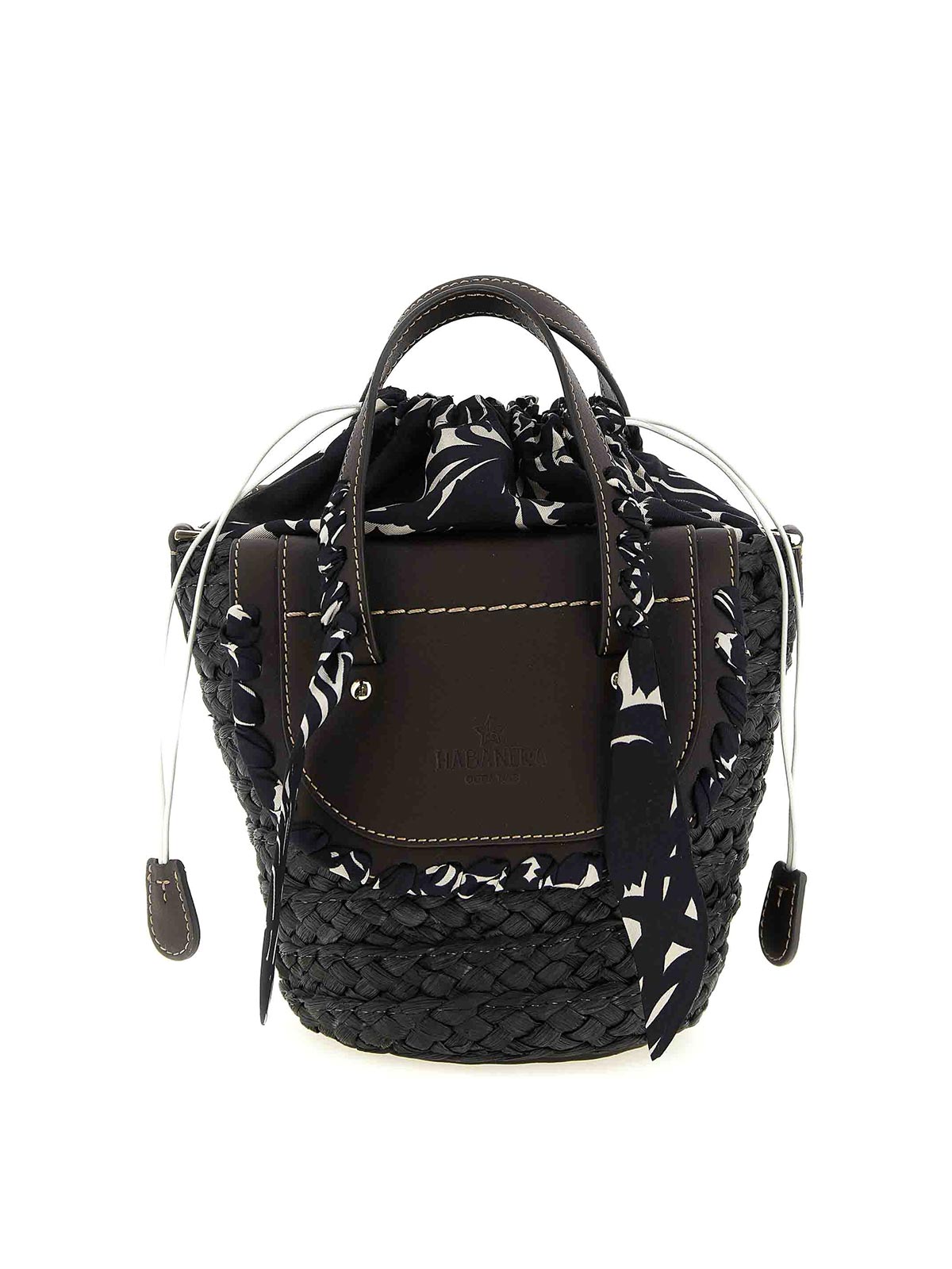 Cuba Lab x San Pa „Habanera Silk“ Handtasche aus geflochtenem Bast und Glattleder, Klappen und doppelter fester Henkel, verziert mit gewebtem Seidenband mit Eclipse-Muster, Innenfutter aus Seide mit Eclipse-Muster. Tasche mit Kordelzug, verstellbarem und abnehmbarem Schultergurt. Hergestellt in Italien von Sanpatrignano, mit Liebe. Handgefertigtes Produkt, alle Unvollkommenheiten sind als Merkmale der Einzigartigkeit anzusehen.