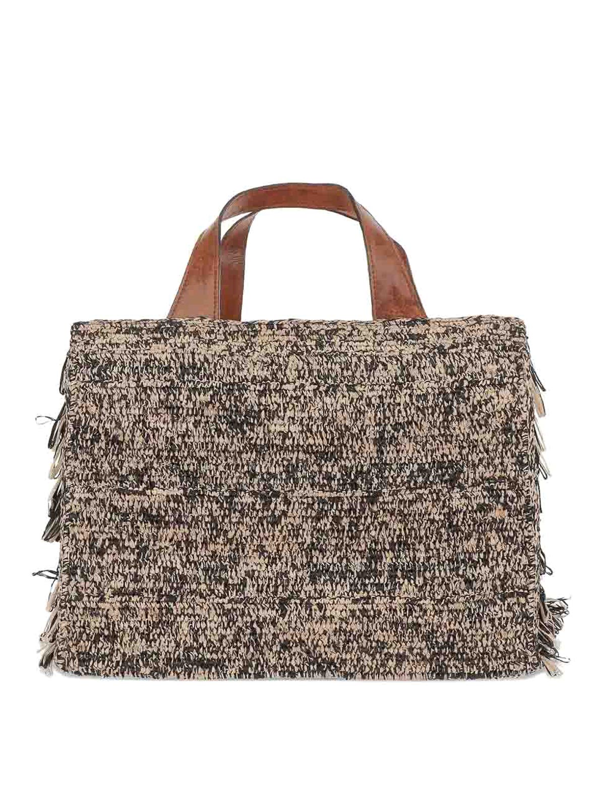 Onja-Tasche aus 100% Stroh, Tragetasche mit gewebtem Design, Fransendetail, zwei Henkeln, Magnetverschluss, Einzelfach, interner Logo-Applikation und durchgehendem Innenfutter.