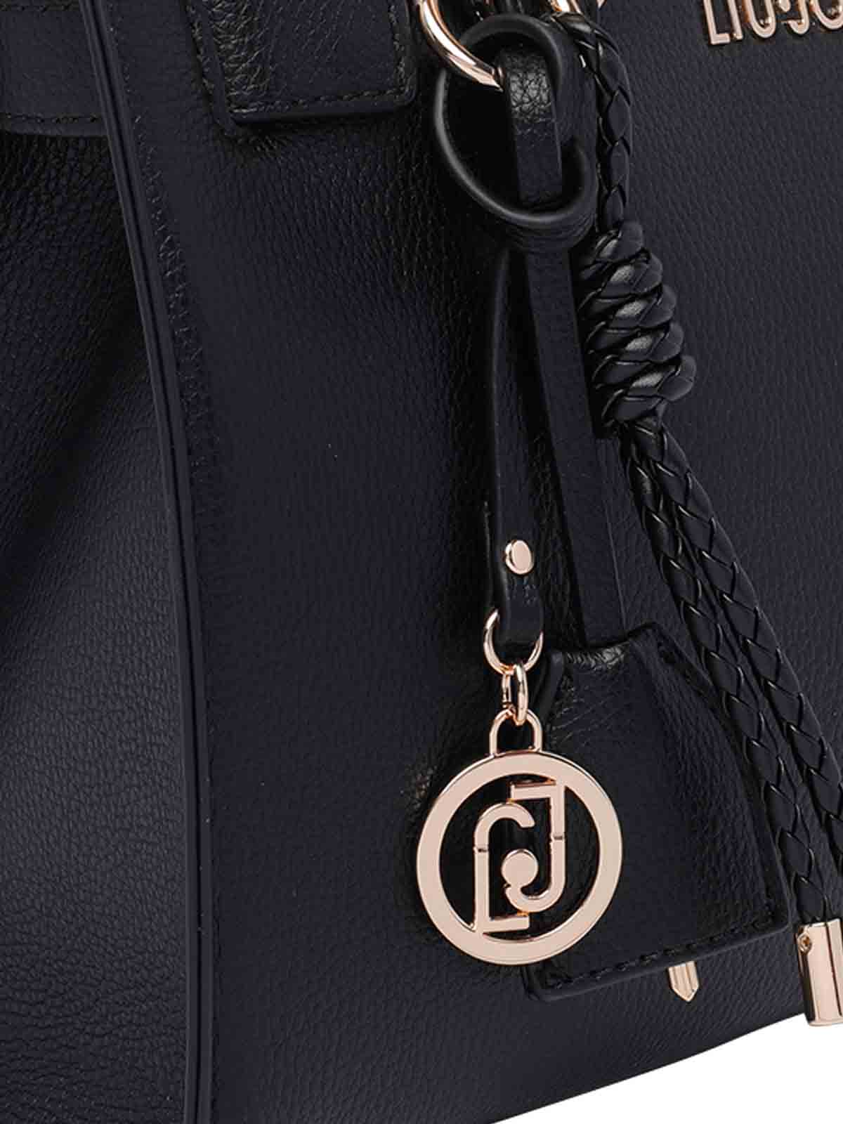 Liu Jo schwarze Logo-Handtasche, 3 Fächer, Magnet- und Reißverschluss, 2 Griffe, anpassbarer und abnehmbarer Riemen, Logo auf der Vorderseite