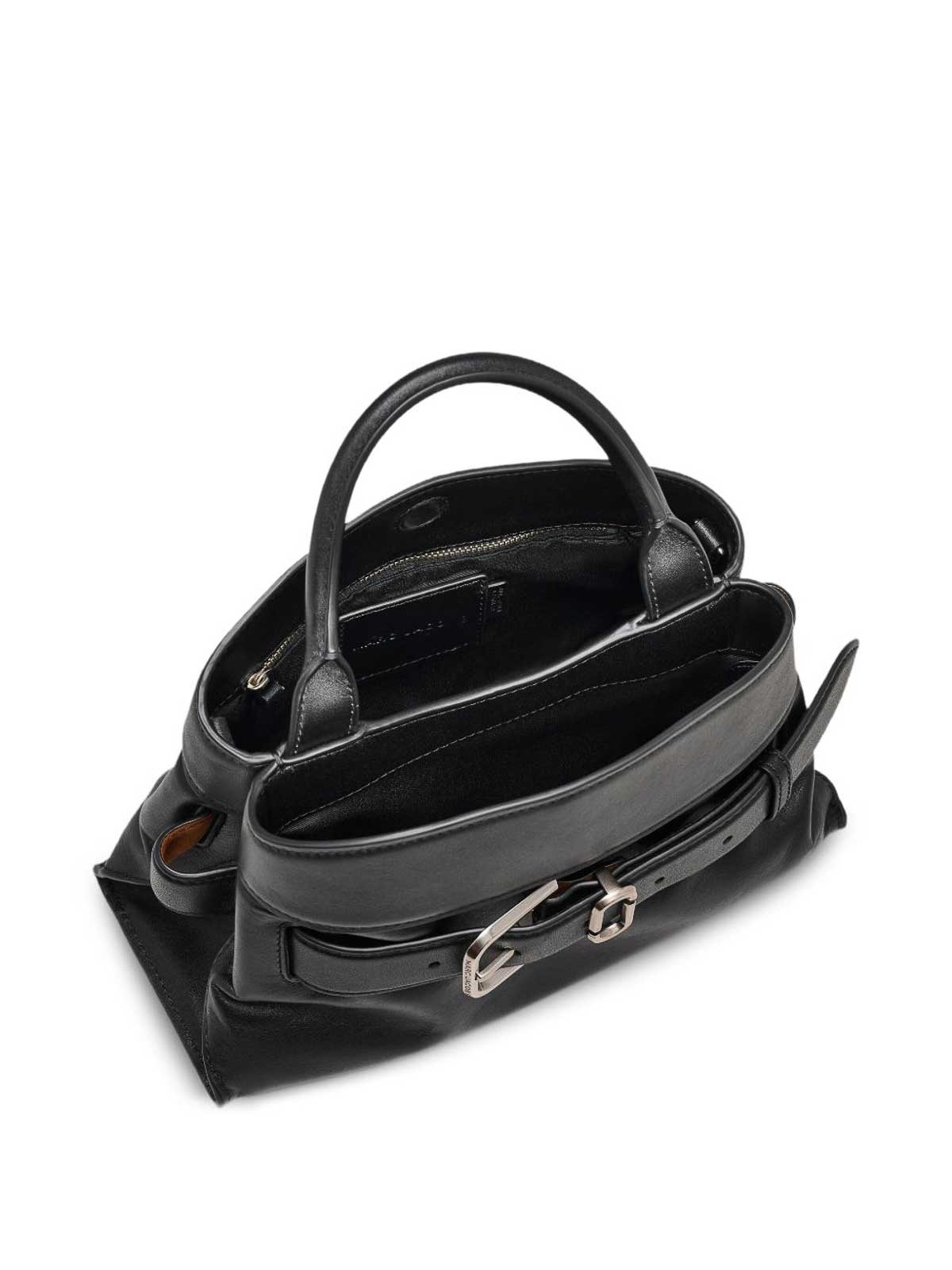 Schwarze Oberseite, verstellbarer Schulterriemen, Schnalle, farblich abgestimmte Tasche mit Reißverschluss. Dieses Stück wird komplett mit einem schützenden Staubbeutel geliefert