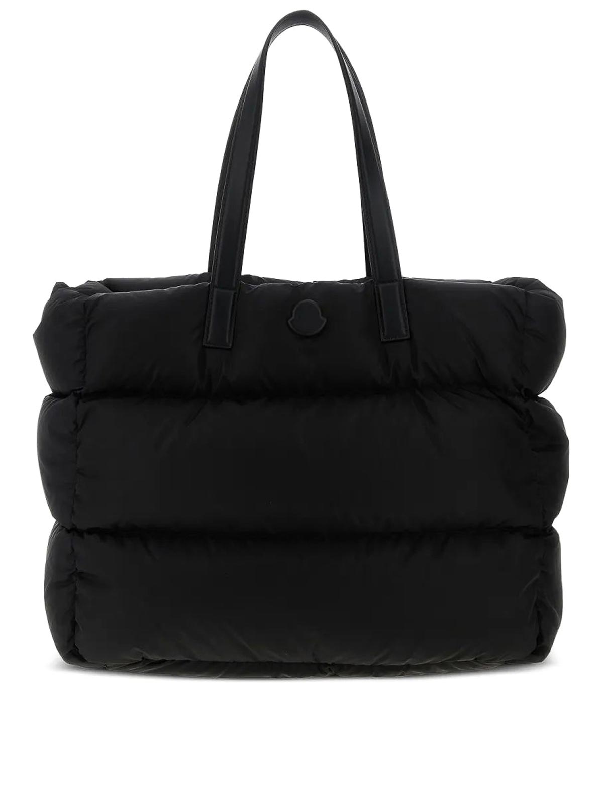 Schwarzes, gestepptes Design, gepolsterte Konstruktion, zwei Tragegriffe an der Oberseite, Karabinerverschluss
