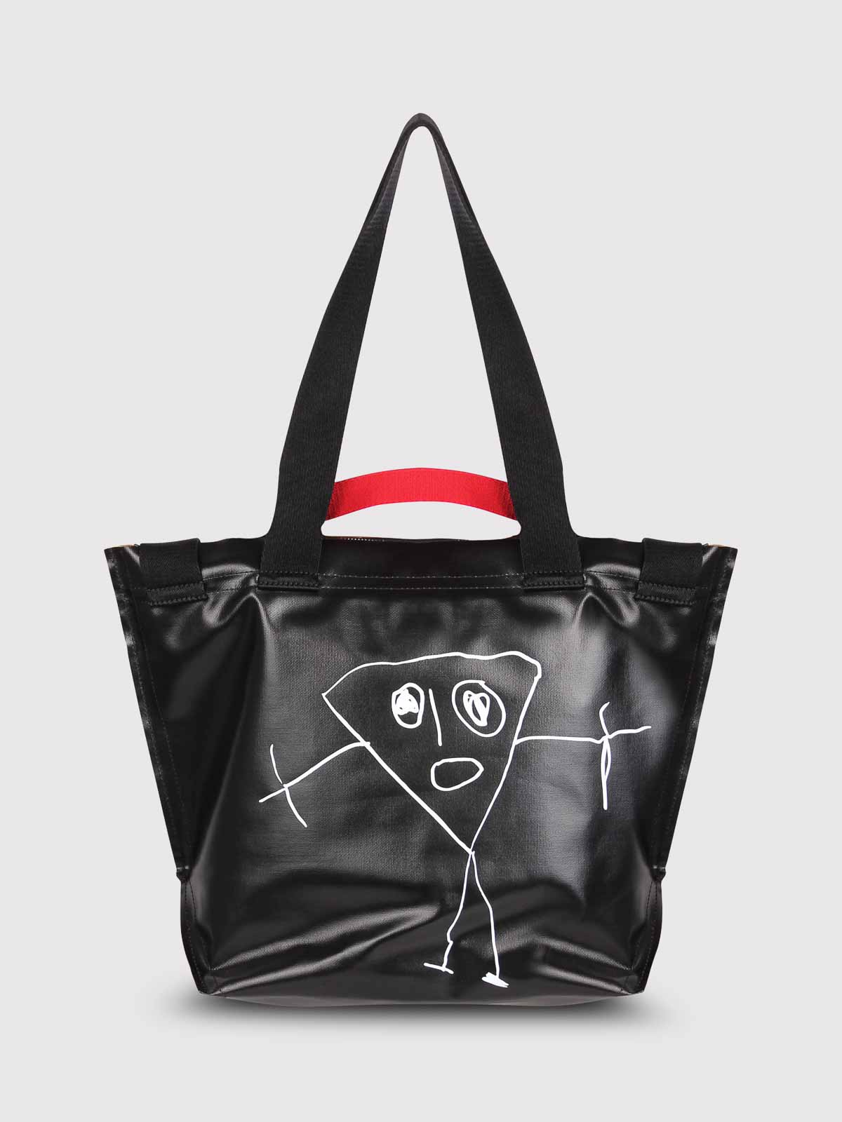 Shopper Pili und weiß, mittelgroß von Plan C, aus bedruckter, patinierter Leinwand, verstellbar durch, flache Griffe