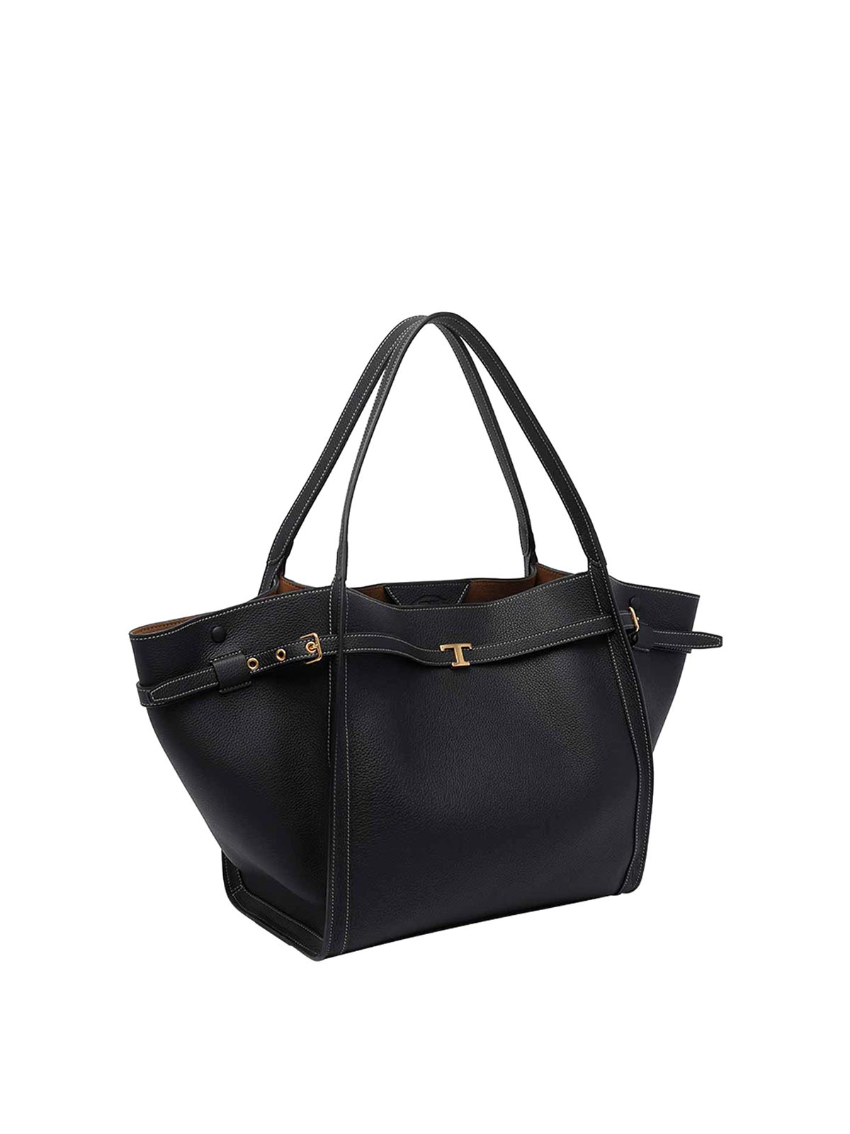 Mittelgroße Einkaufstasche von Tod's aus Leder, ineinandergreifender Verschluss, Innentasche mit Reißverschluss, 2 Schulterriemen, Obermaterial aus Leder