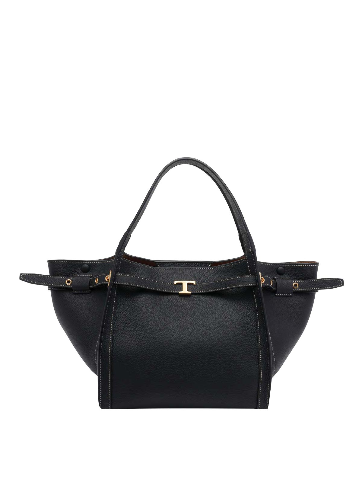 Schwarze Lederhandtasche von Tod's, kleines Modell, ineinandergreifender Verschluss, Innentasche mit Reißverschluss, 2 Griffe, verstellbarer und abnehmbarer Schultergurt