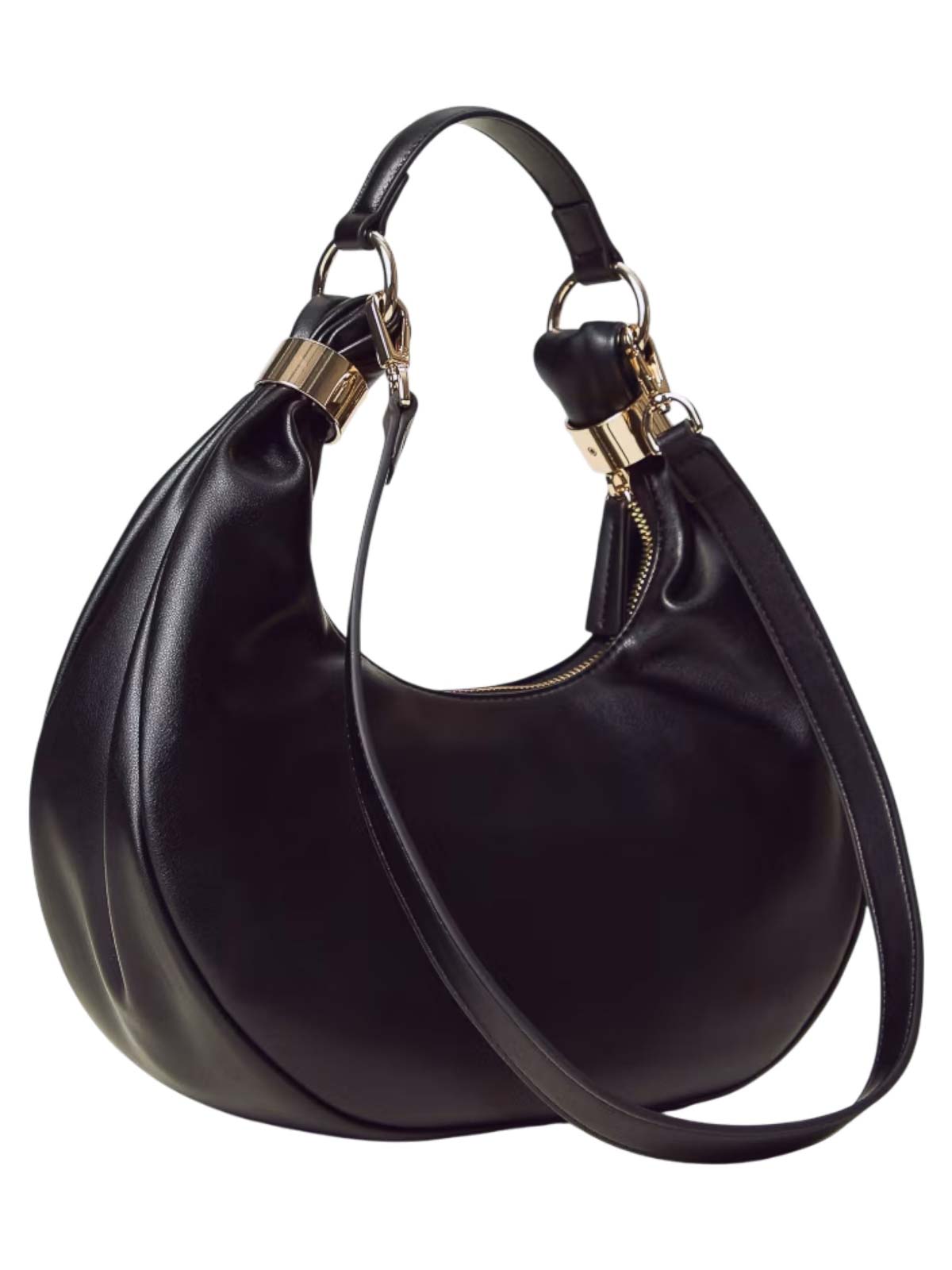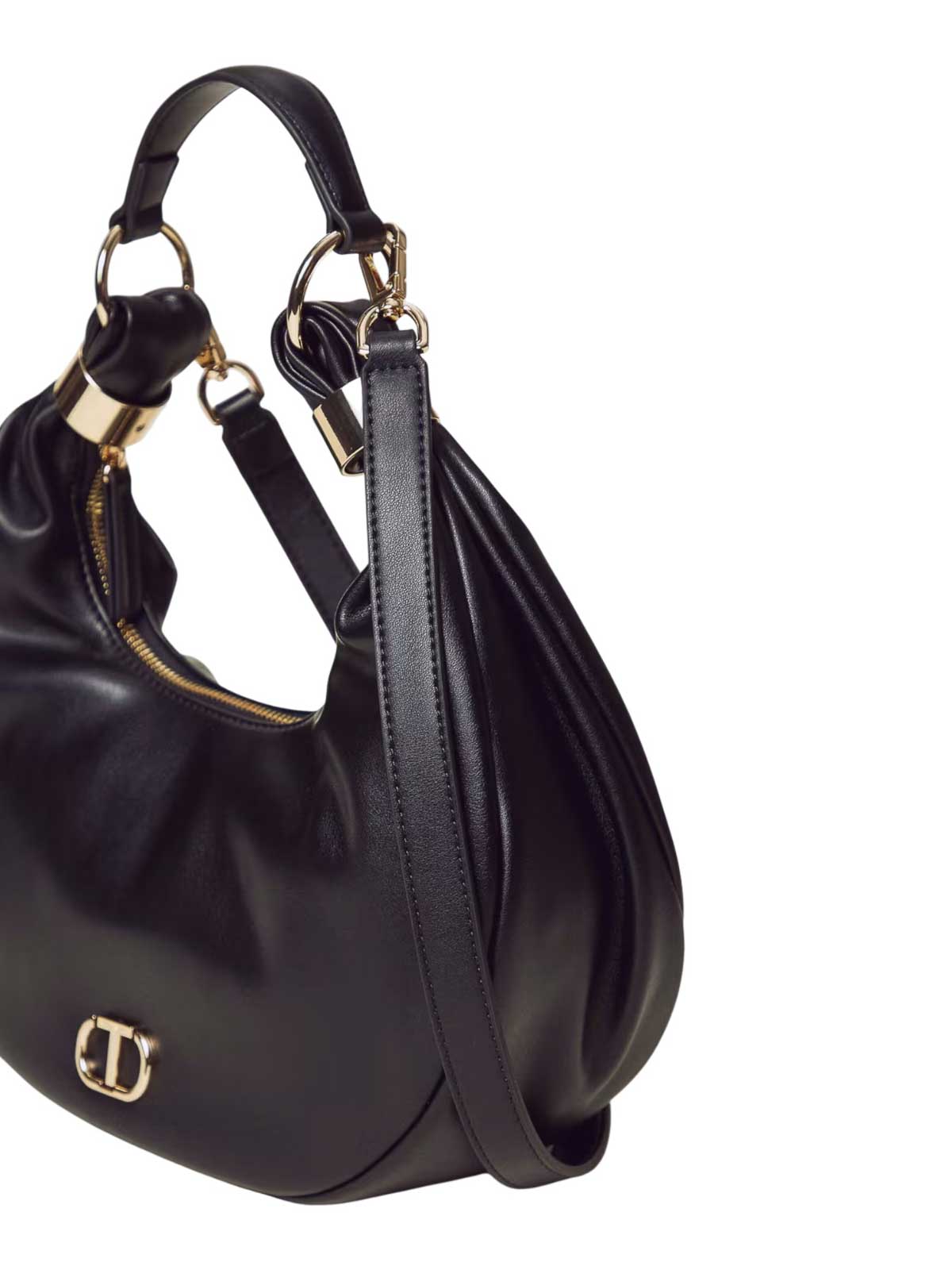 Twinset Eclipse Beuteltasche mit Ringen Synthetik Die Eclipse Twinset Beuteltasche vereint Eleganz und Modernität in einer abgerundeten Silhouette mit essentiellem Charme aus glattem Synthetik hat ein Halbmond-Design verziert mit dem ovalen T-Logo und dekorativen Metallringen, die die weiche Linie unterstreichen. Die Synthetik garantiert bequeme Tragbarkeit, während der Reißverschluss für Praktikabilität und Schutz sorgt Halbmondstruktur mit weichem Profil, einzelne metallische Synthetik mit dekorativen Ringen, ovales T-Logo, obere Vorderseite mit Reißverschluss mit flacher Tasche, Oberfläche, unifarben Wirkung