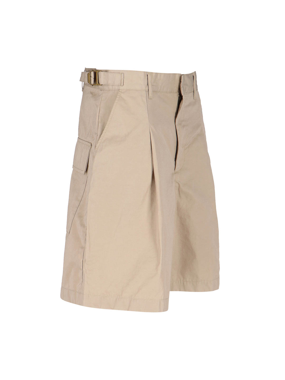 Bermuda Aoshi Entire Studios, aus gemischter beiger Wolle, mittelhoher Bund, Gürtel mit passendem Gürtel, Hakenverschluss und Reißverschluss, verstellbare Seitengurte, zwei Seitentaschen, zwei Seitentaschen
