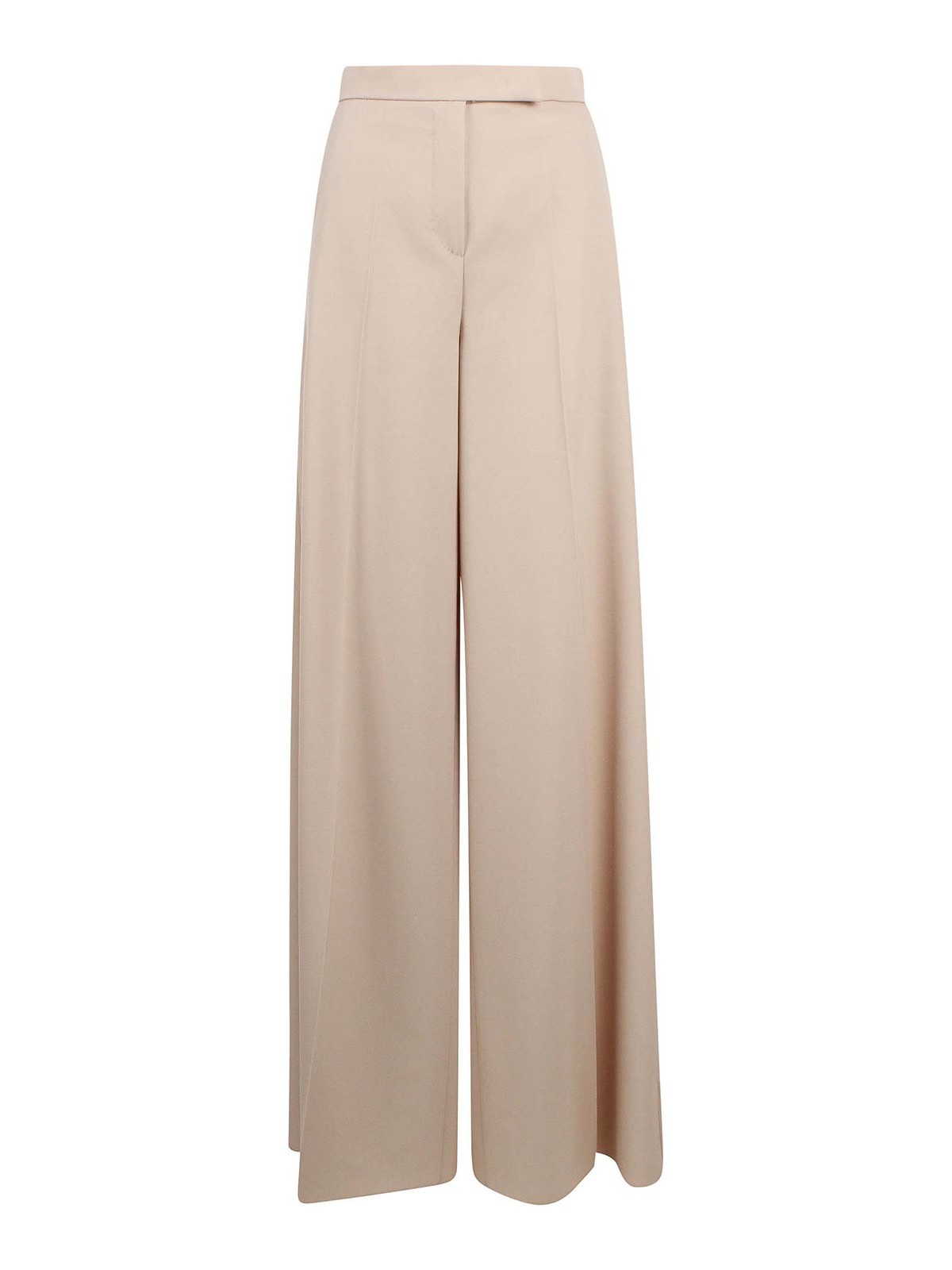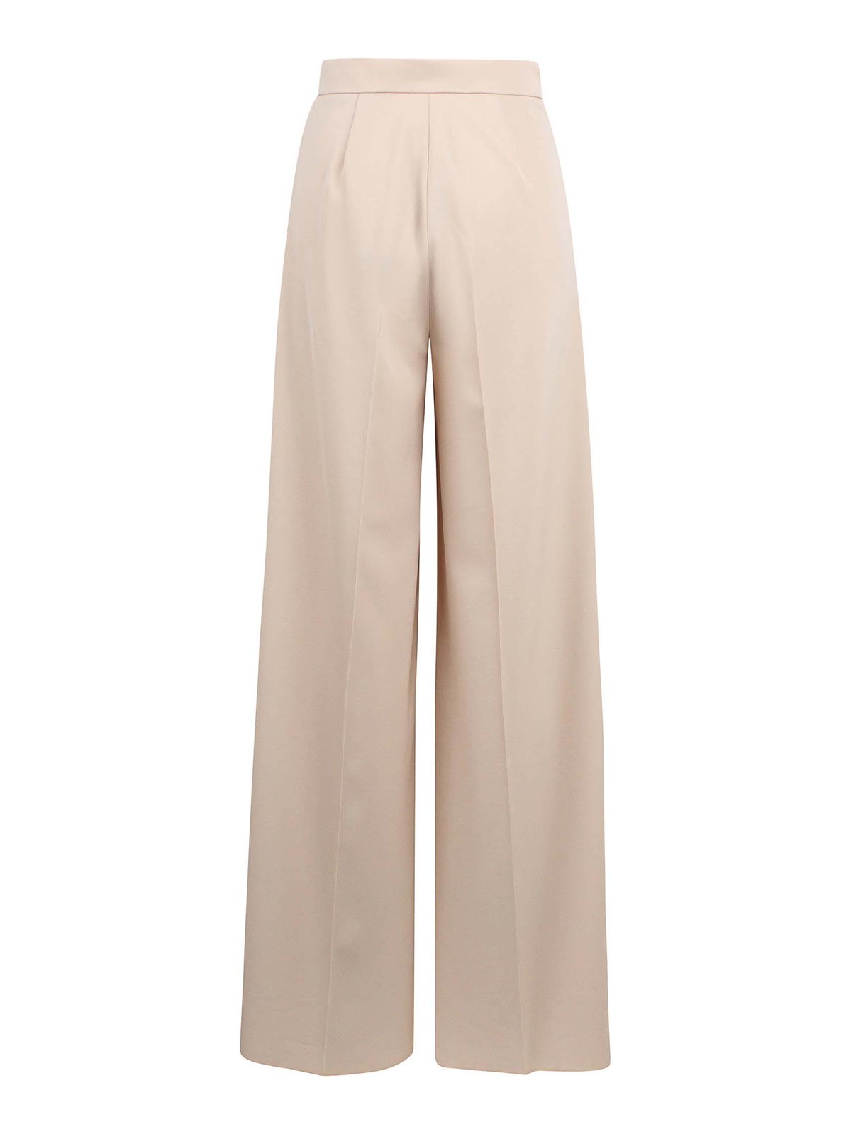 Nymphenhose in Max Maras Wollgabis. Hoher Bund, weites Bein, gebügelte Falte, französische Seitentaschen, die mit einer High-Alive-Liste geschlossen werden, Reißverschluss mit Klappe und Haken.