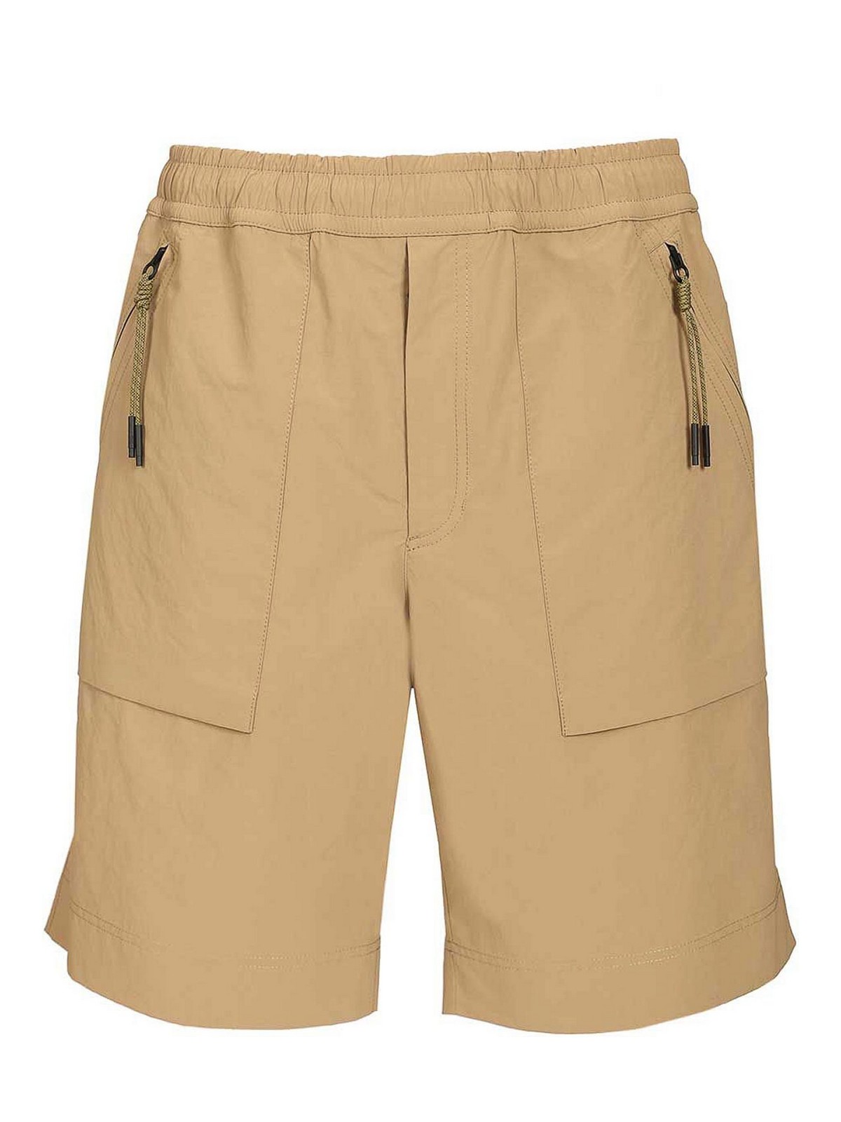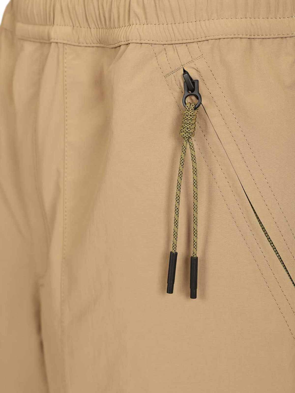 Elastischer Bund in Froiss-Technik mit Kordelzug, Schrägtaschen mit Reißverschluss, Gesäßtaschen mit Klappen