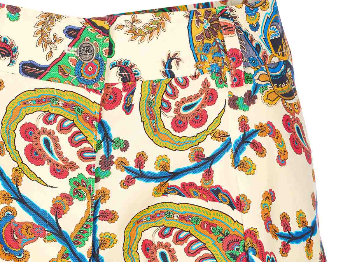 Etro weiße bedruckte Shorts, Knopf- und Reißverschluss, Taschen, hohe Taille, gemustert
