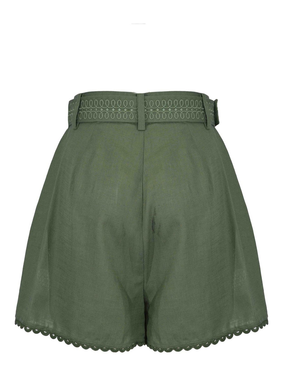 Damenshorts in Leinenmischung, Amosa, Modell mit Palmenstickerei, Stoff: leichte Leinenmischung, Muster: Stickerei mit Palmenmotiv, Taille: hoch mit Gürtelschlaufen und passendem Gürtel, Verschluss: Reißverschluss mit Haken, Taschen: nicht sichtbar, Länge: kurz, Details: Lochstickerei, Gürtel mit runder Schnalle in Bastoptik, veredelte Unterkante, gefüttert: nein, Passform: weich