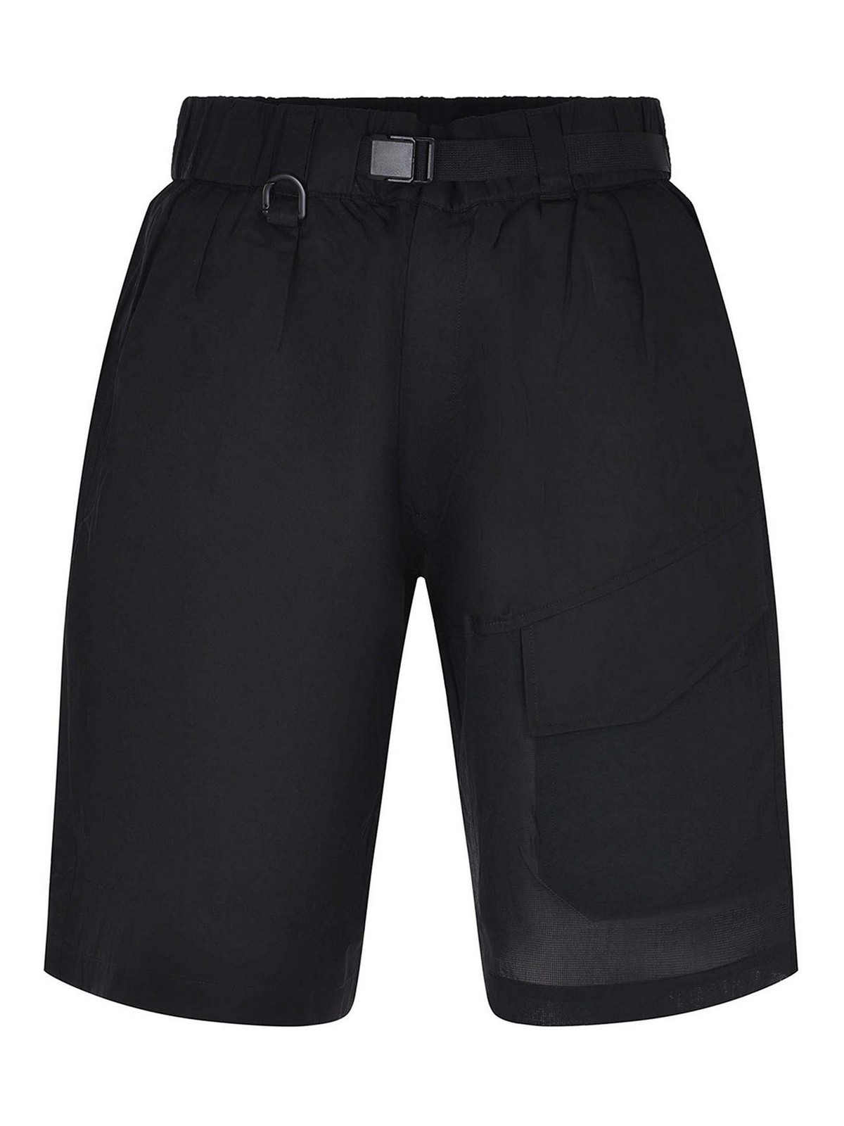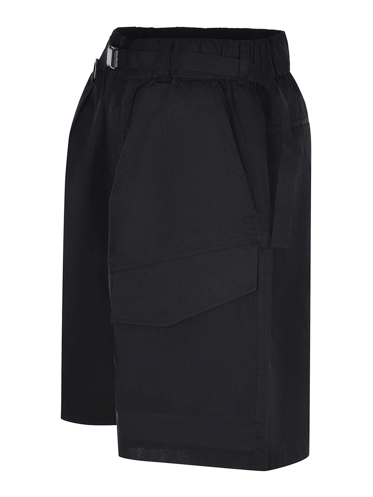 Bermuda Y-3 aus schwarzem Polyester, Reißverschluss und Knopfverschluss, Gürtelschlaufen in der Taille und abnehmbarer Gürtel, Seitentaschen, Gesäßtaschen, große Seitentasche mit Klappe und Knopf, Ton-in-Ton-Y-3-Monogramm auf der Rückseite, 100% Polyester