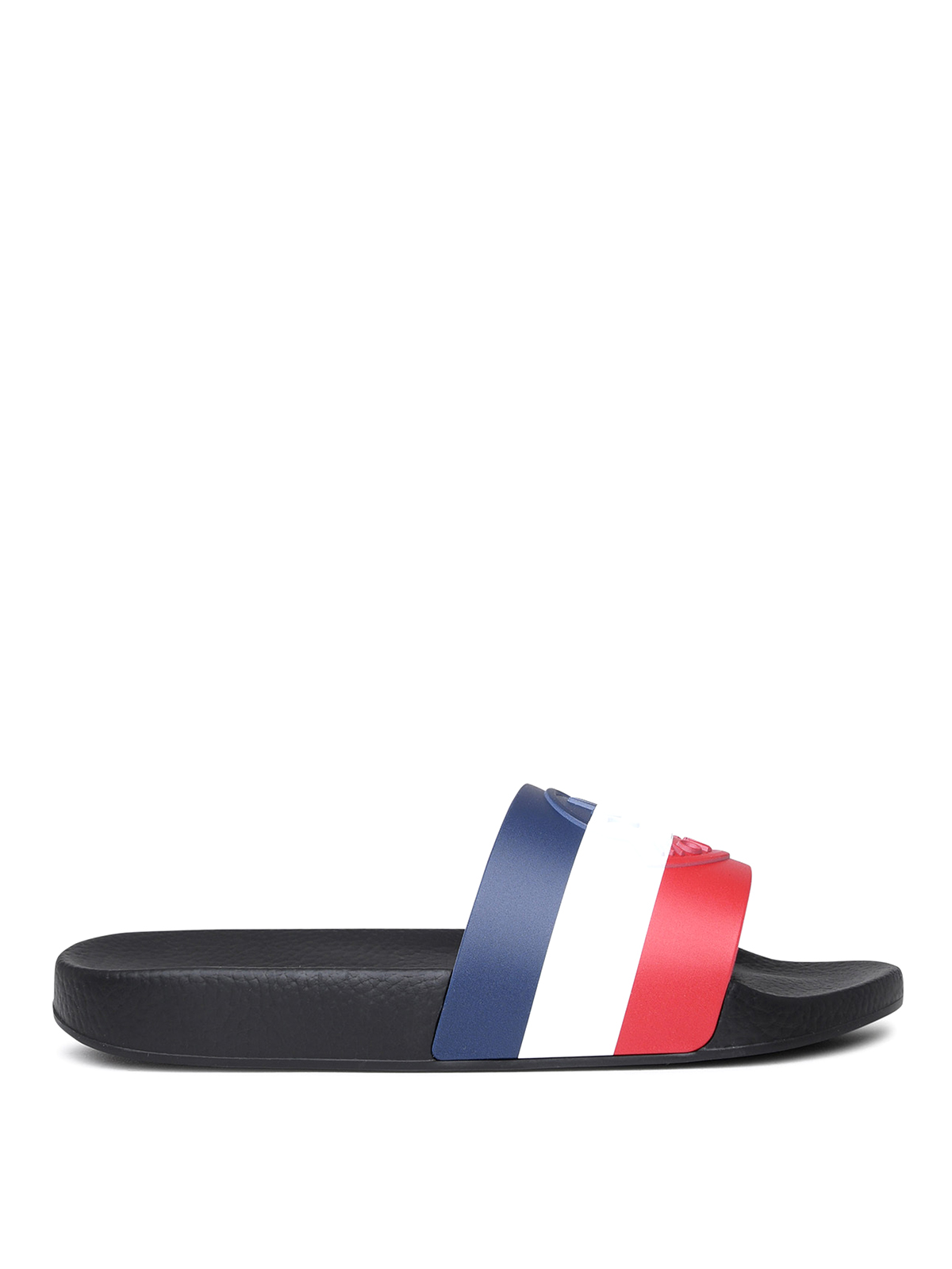 Dreifarbiges Logoband mit Logoprägung am Riemen. EVA-Sohle