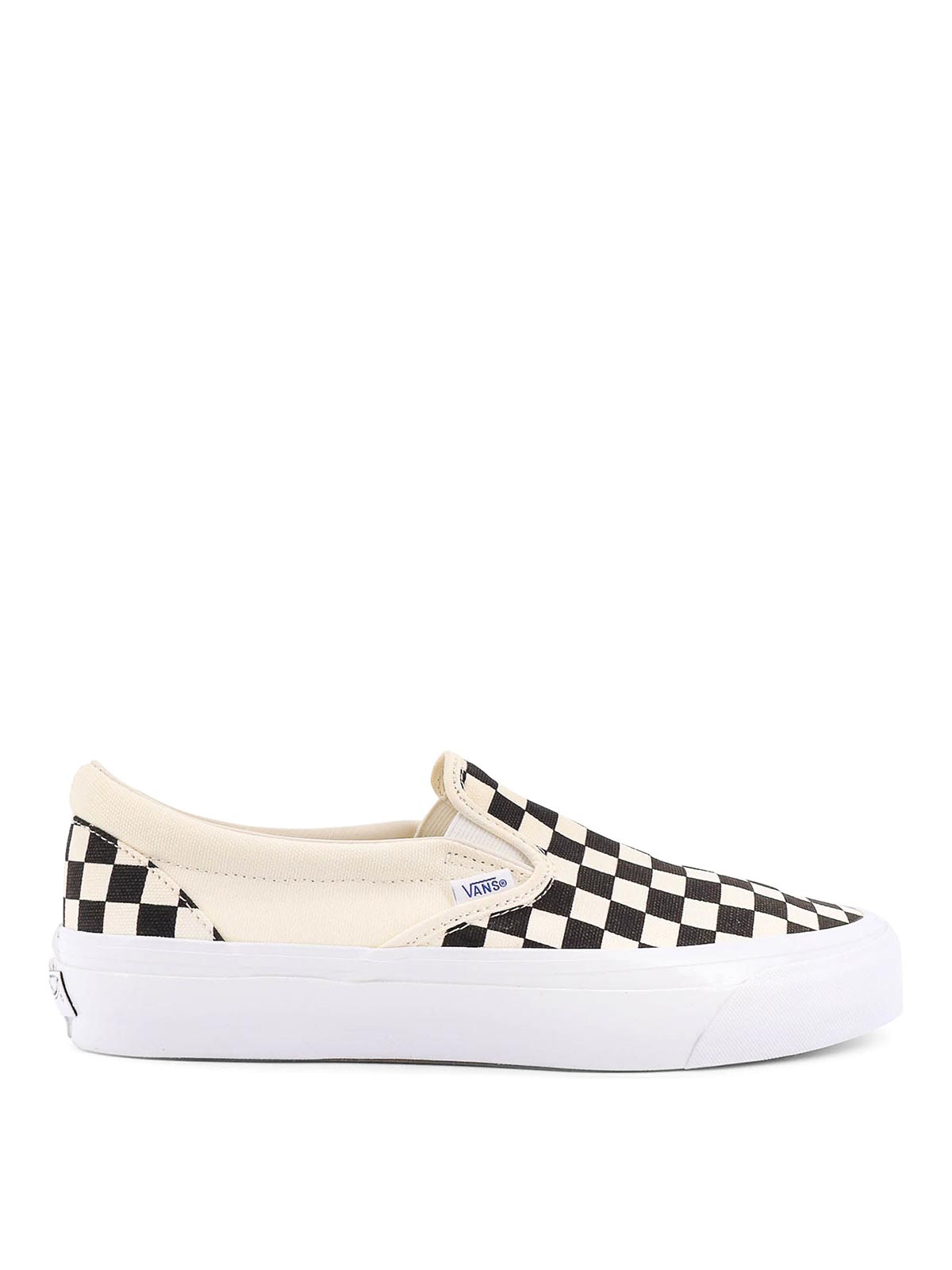 Elastischer Einsatz auf der Vorderseite, Stoff, Logo-Label, Logo-Patch auf der Rückseite, genähte Profile und Schachbrettmuster, Leinwanddruck, Sohle: Gummi