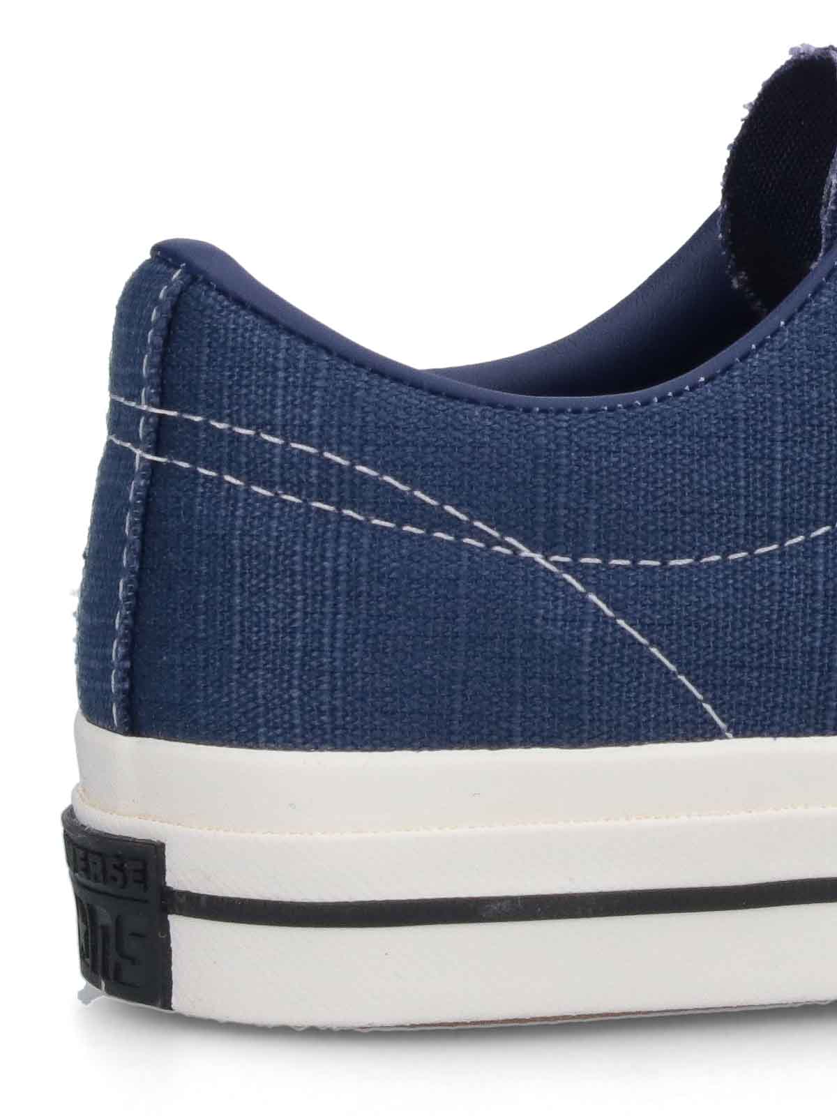 Sneakers Cons One Star Pro Converse aus blauem Canvas, schwarze Schnürsenkel, runde Spitze, Aufnäher, Logo in Ton, Stern in Ton, applizierter seitlicher Patch, Logoapplikation, Retro-Effekt