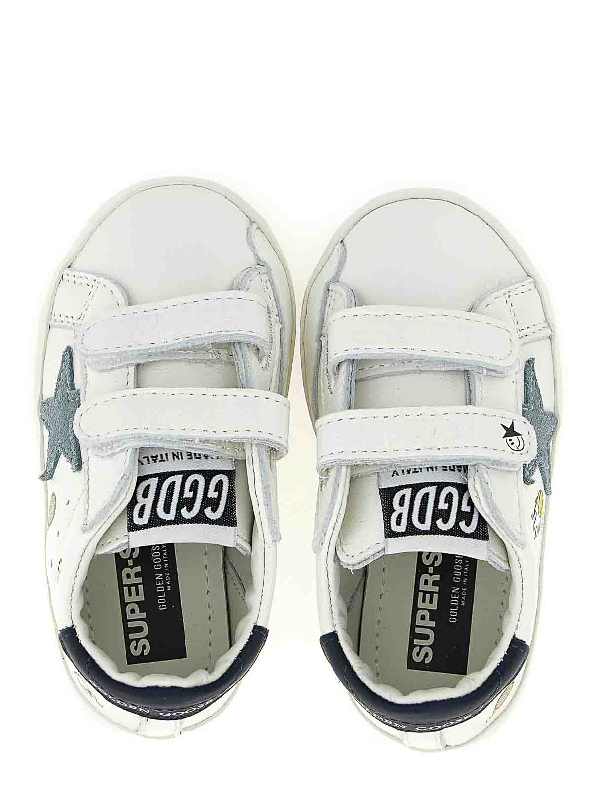 Sneakers aus Nappaleder im Design „Baby School“ für Kinder, seitlicher Stern aus Veloursleder, kontrastfarbener Absatz, Klettverschluss, Gummisohle.