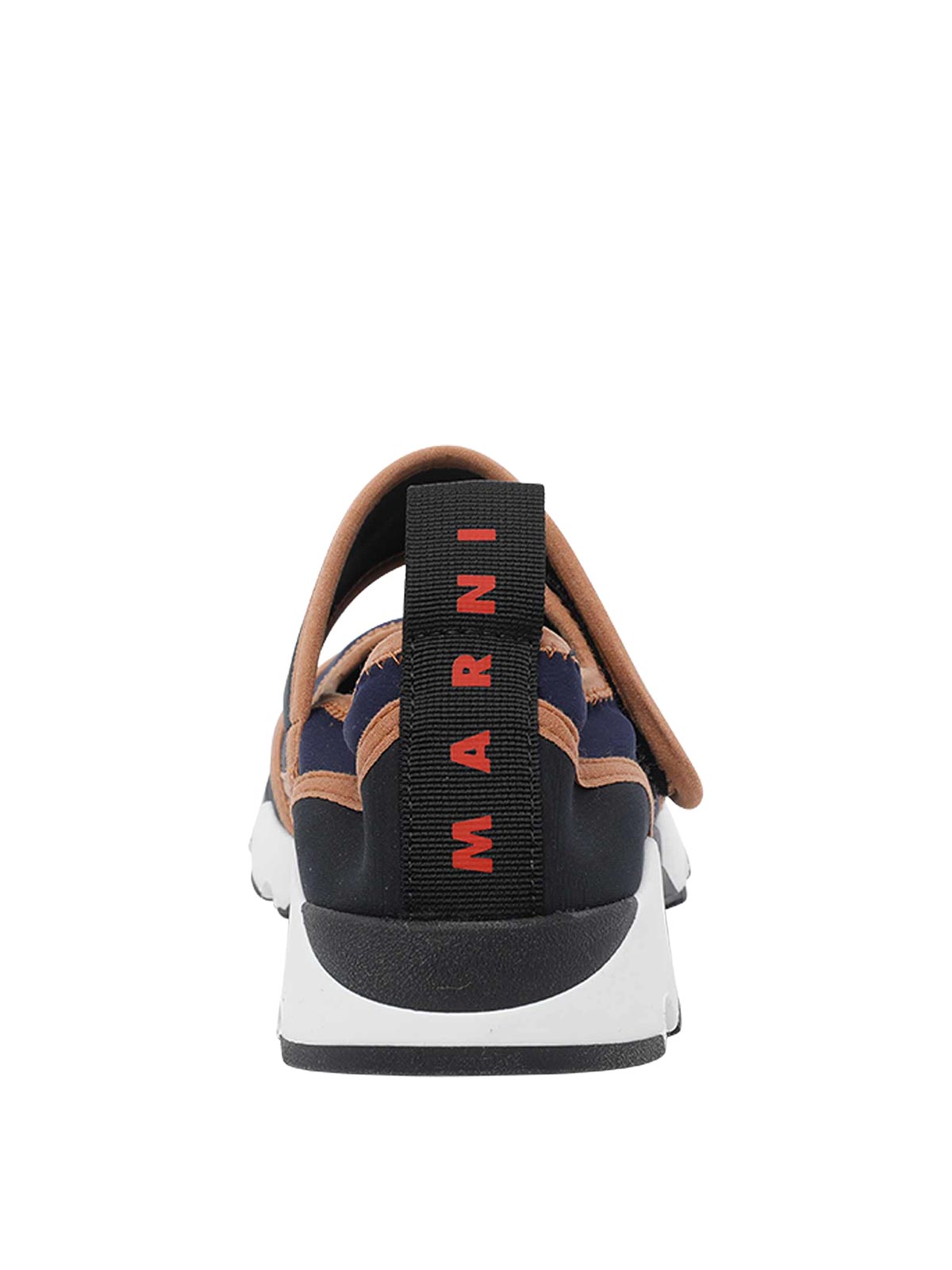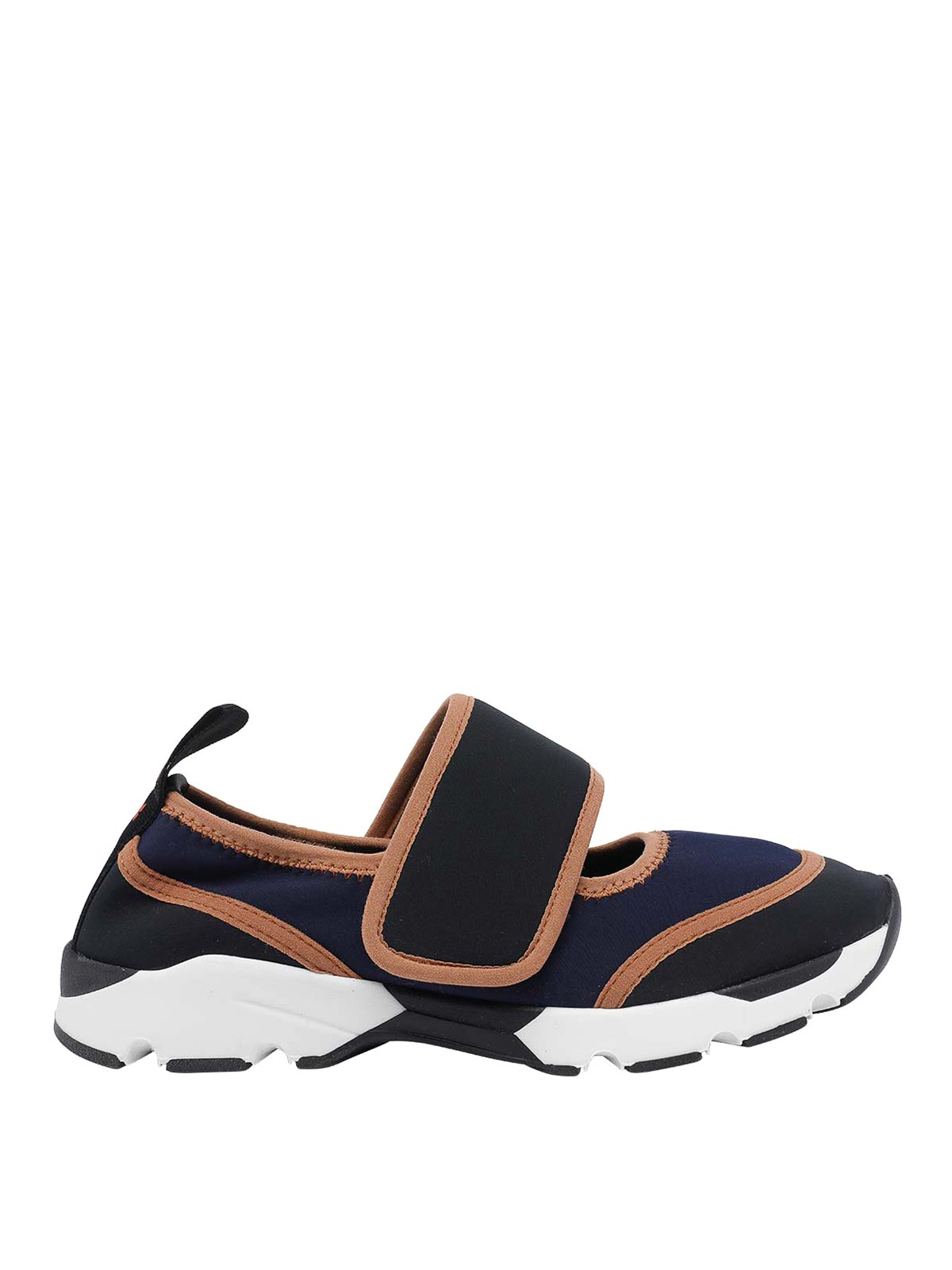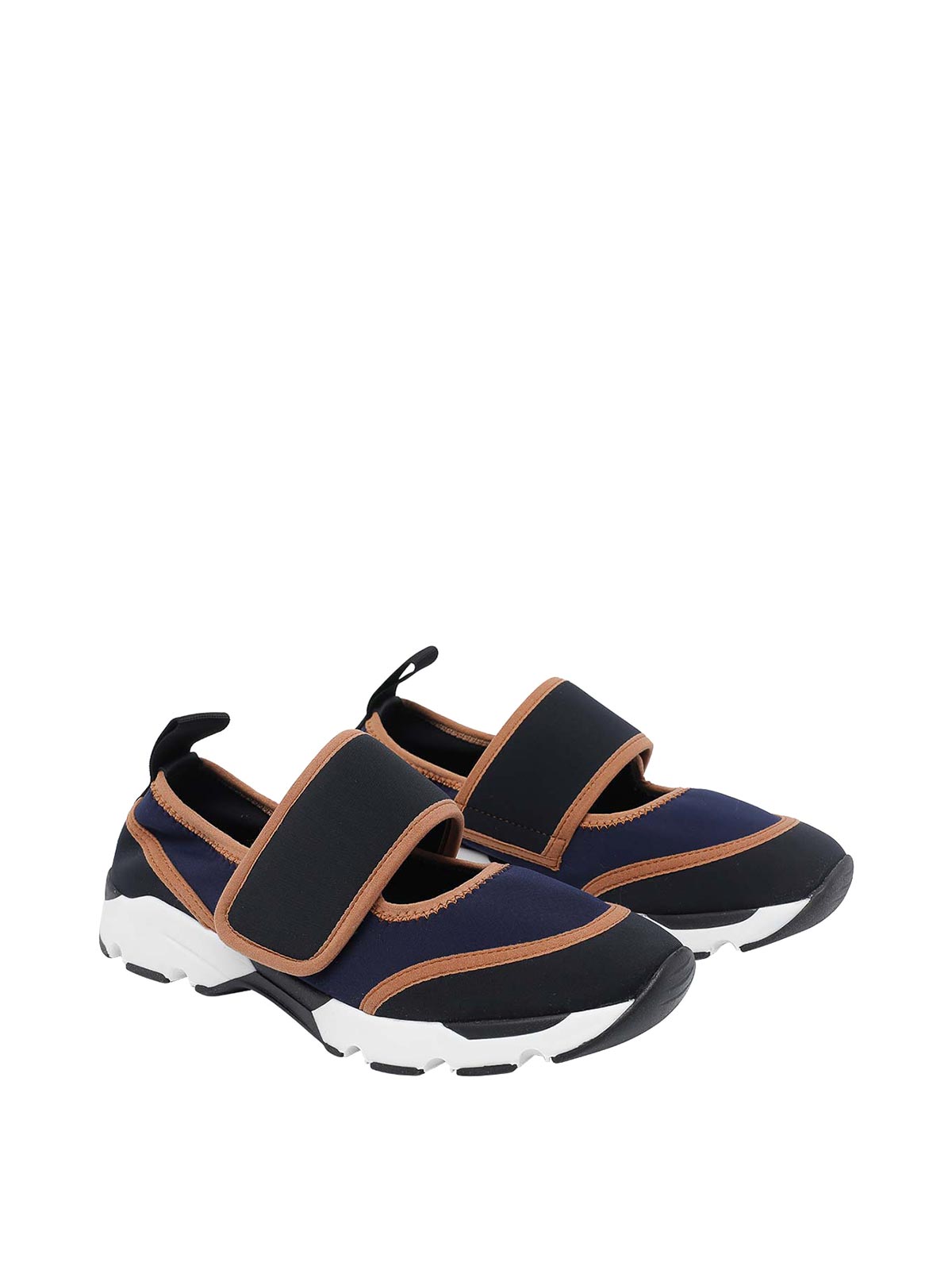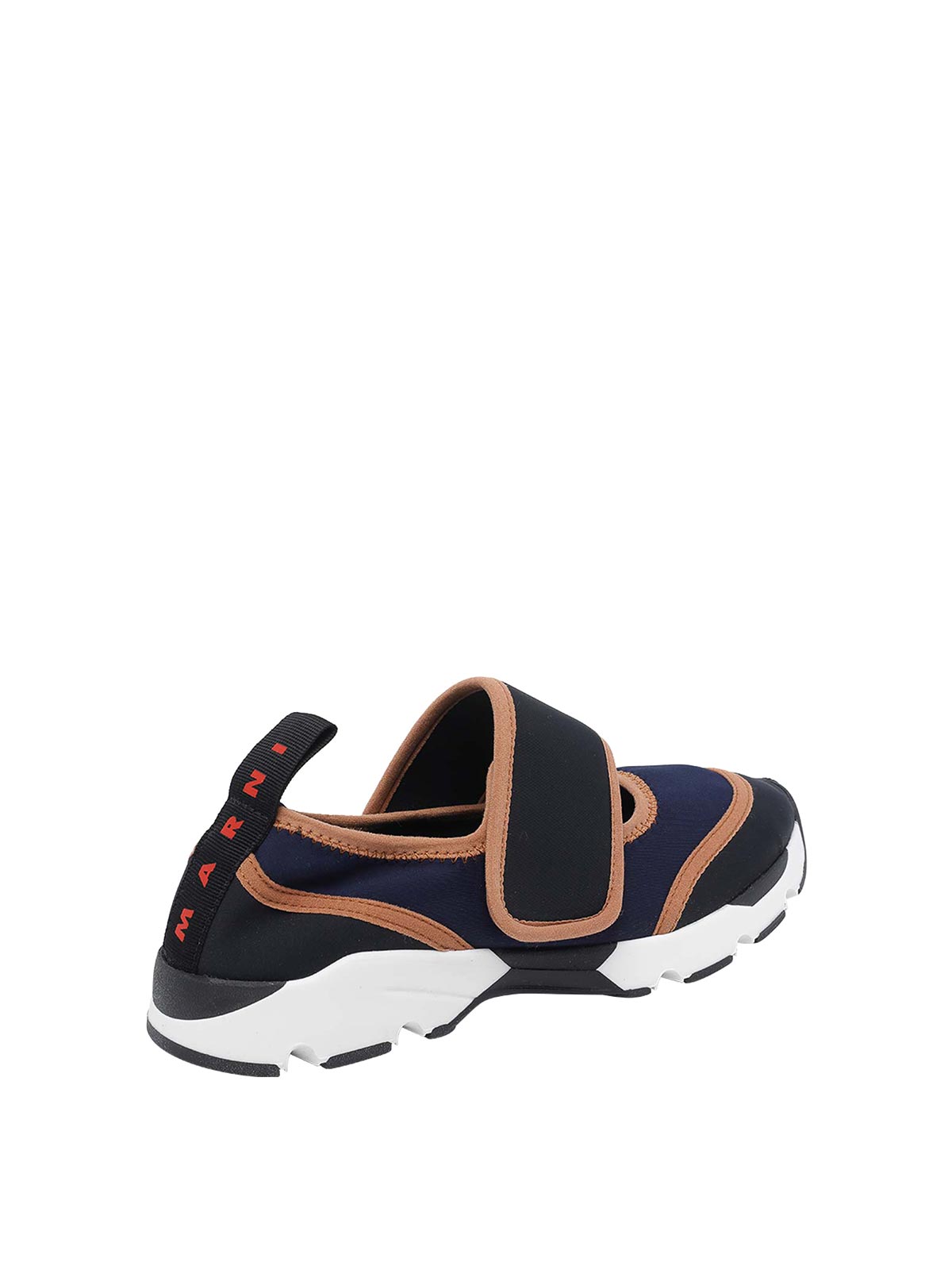 Marni Mary-Jane-Laufschuhe aus Lycra in Blau und Braun, runde Spitze, Klettverschluss, Modell Lycra