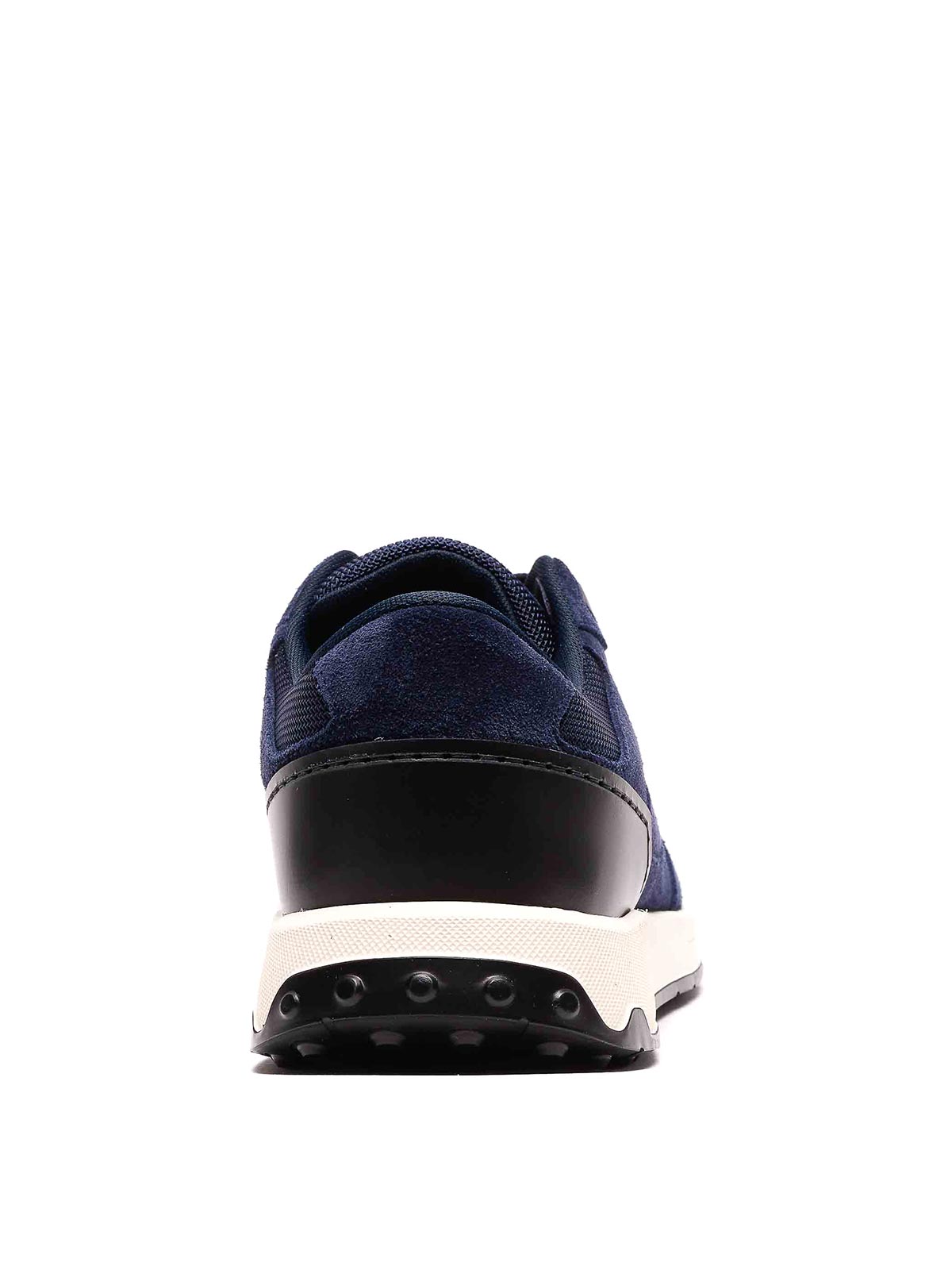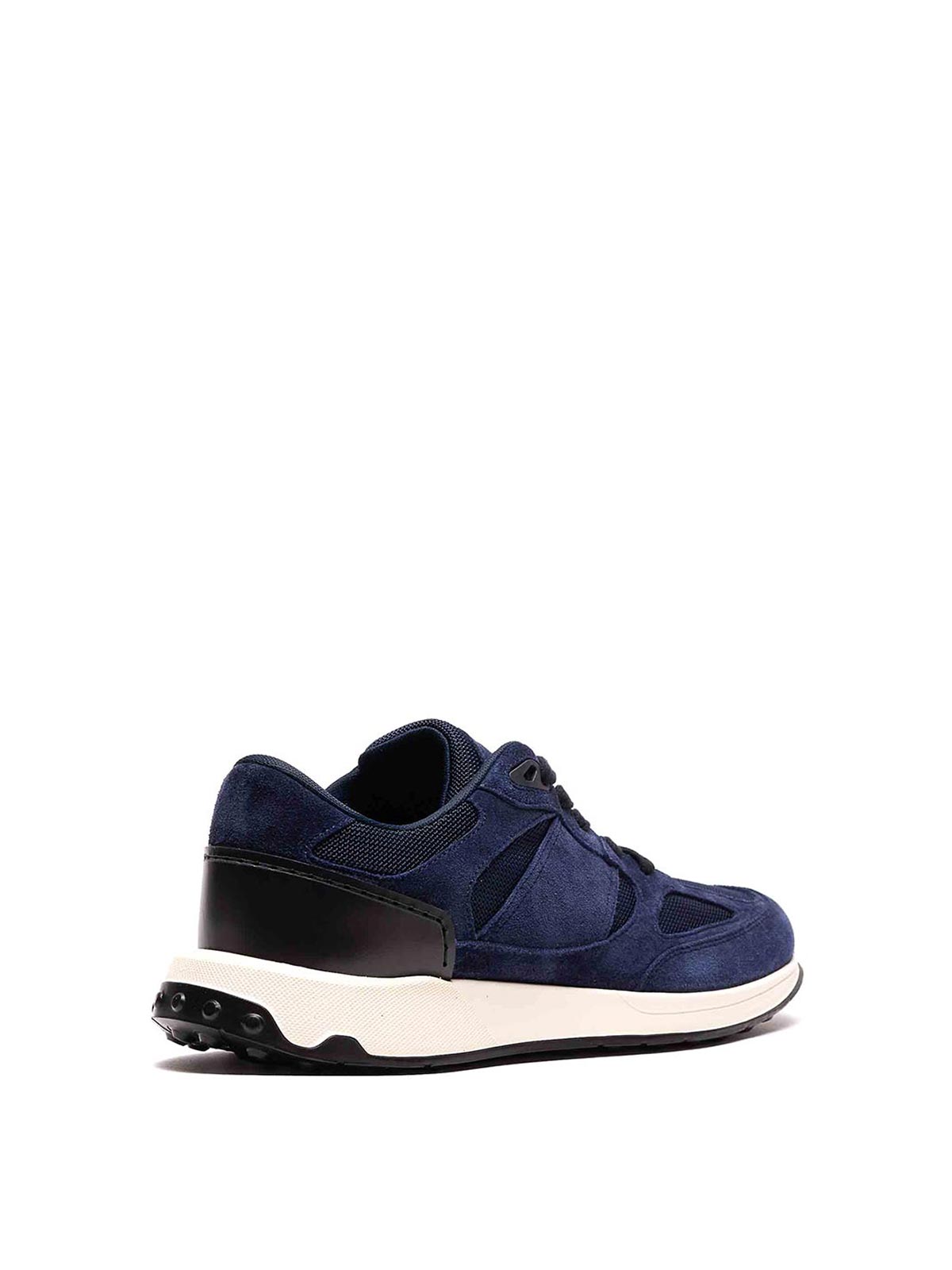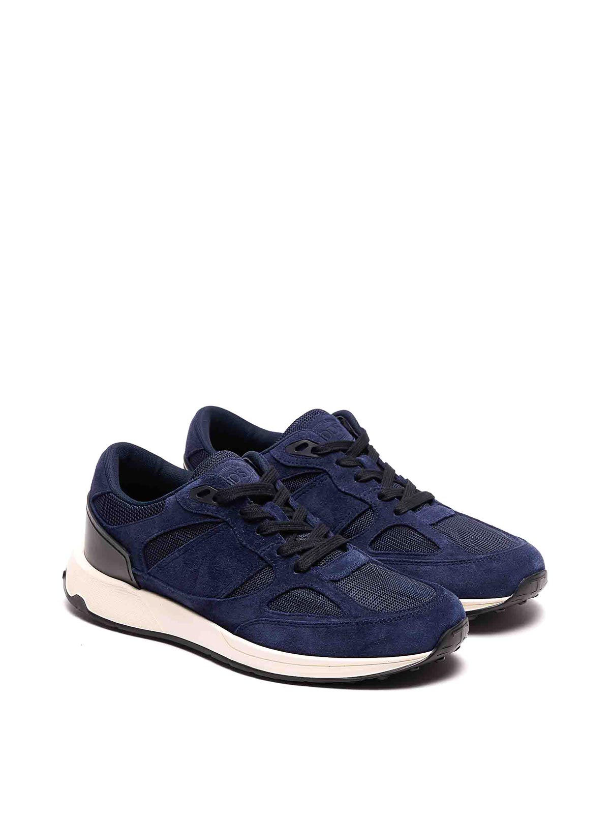 Dunkelblaue Sneakers von Tod's, Schnürverschluss, Obermaterial aus Veloursleder und Stoff, runde Spitze