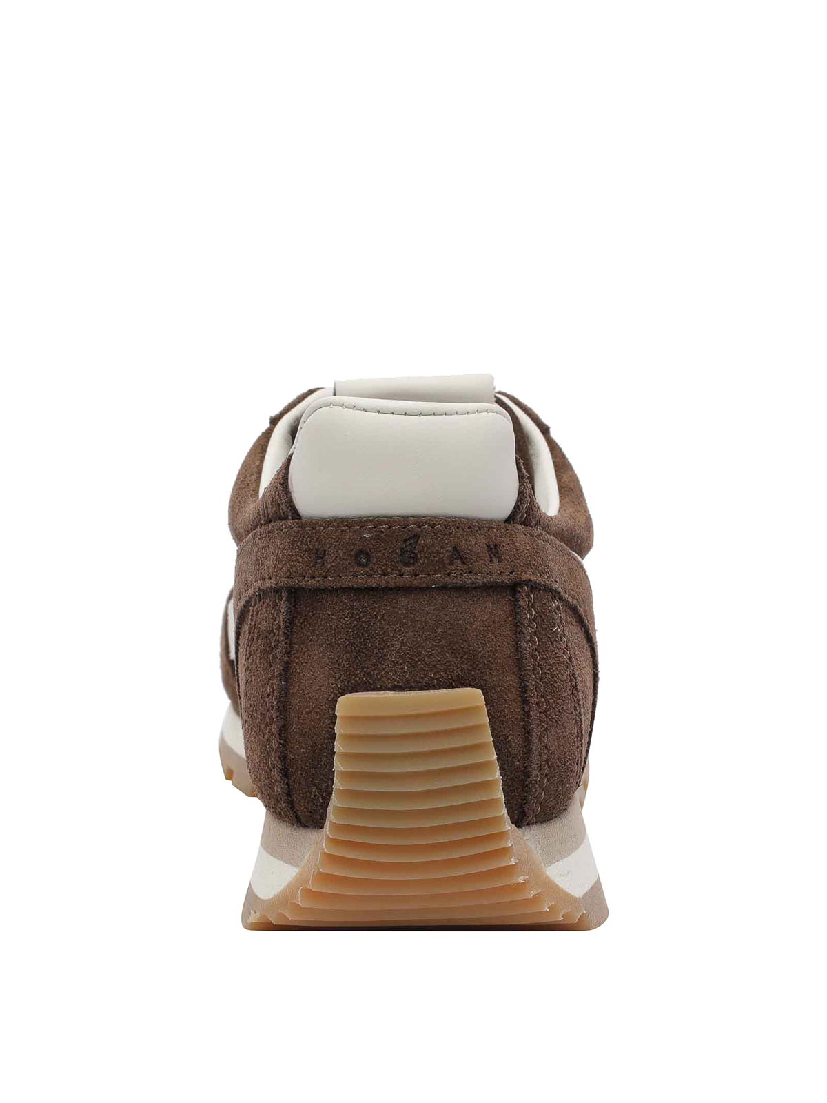 Braune Hogan 86er-Sneakers von Hogan, Obermaterial aus Veloursleder, Schnürverschluss, seitliches Logo, runde Spitze