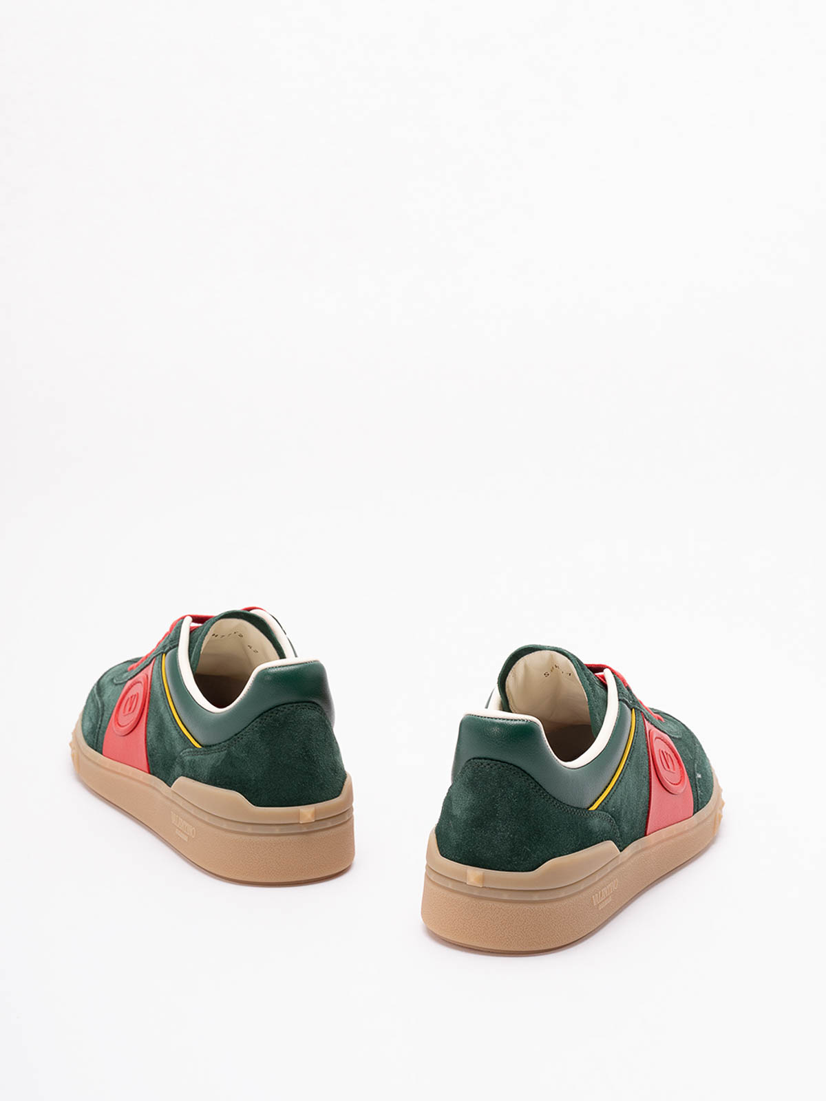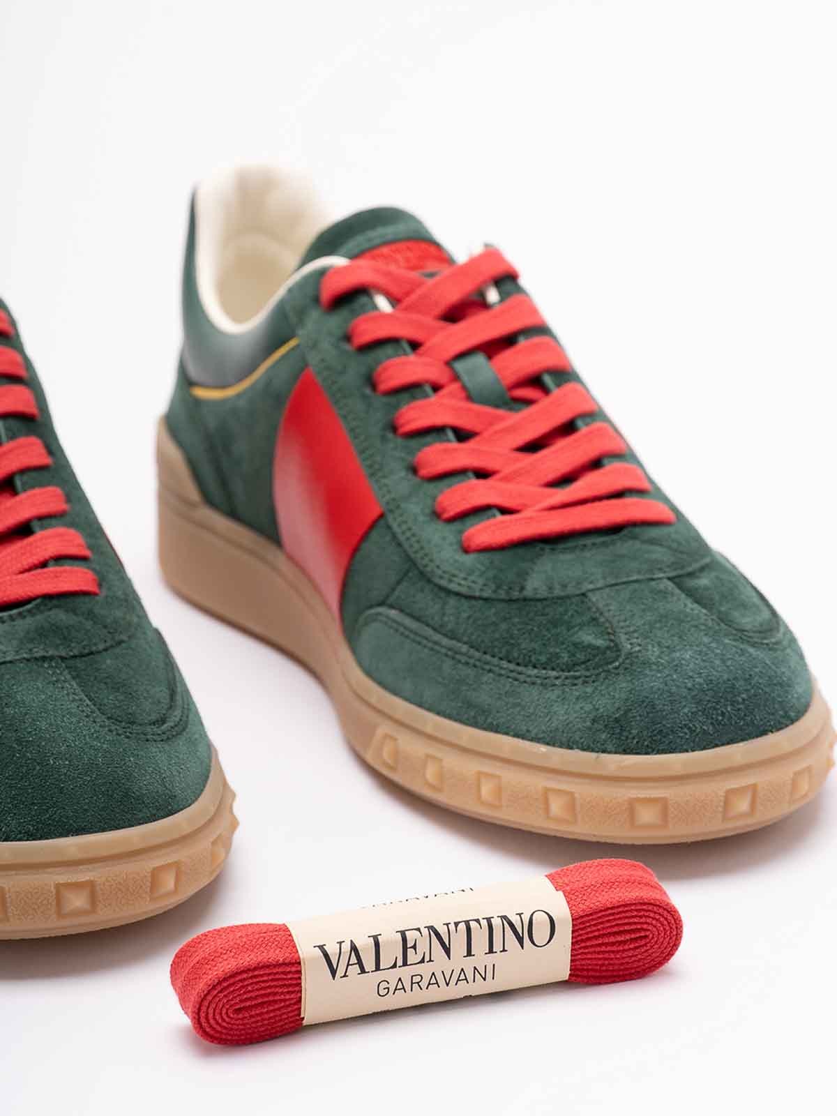 Upvillage Sneakers mit dynamischem Design, hergestellt aus verschiedenen Materialien und grafischen Details. Die Emerald Coral Red Multi-Palette verleiht dem Modell Persönlichkeit und Charakter.