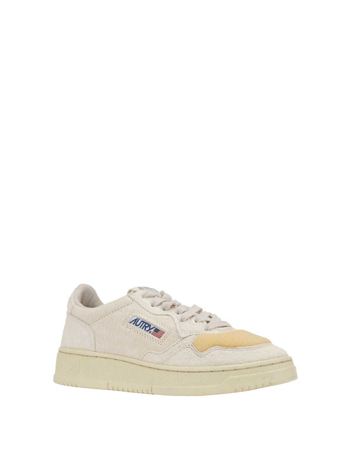 Damen-Sneaker von Autry. Obermaterial aus Leder mit Strohüberzug. Runde Spitze mit Schwammeinsatz. Innenausstattung aus Stoff für ein besseres Tragegefühl. Hinterteil mit hoher Höhe und Kanten aus Leder. Lasche aus Stoff, am Schwamm gepolstert, gekennzeichnet durch einen Logo-Patch. Logo/Schriftzug der Marke sind auch an der Seite, auf der Innensohle und auf der Sohle zu finden. Tallone präsentiert eine in Reliefform gefertigte Schriftmarke. Gummisohle mit ausgezeichneter Widerstandsfähigkeit.