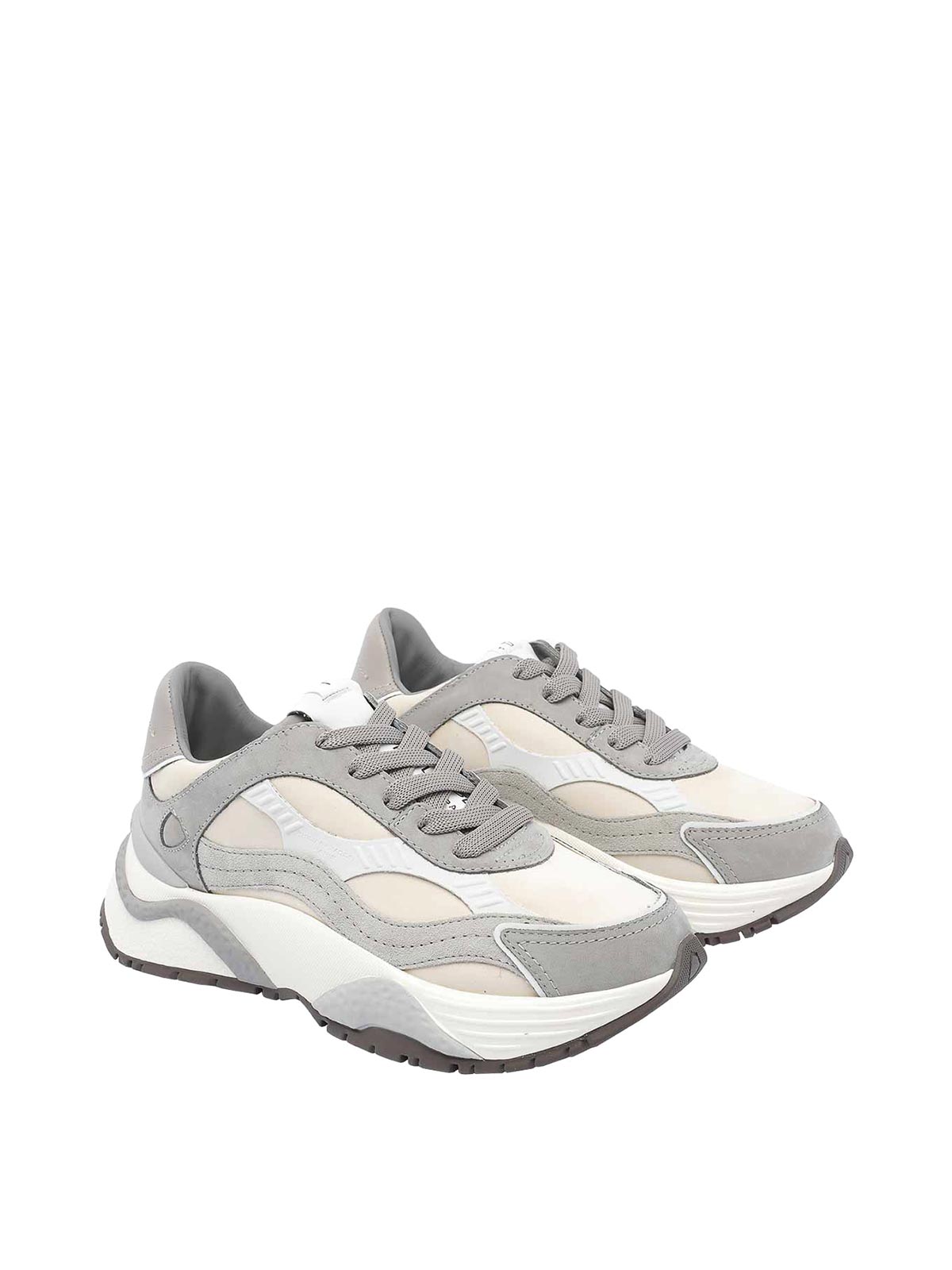 Graue Odeon-Sneakers Modell Philippe, Obermaterial aus Leder und Stoff, runde Spitze, Schnürverschluss, Logo