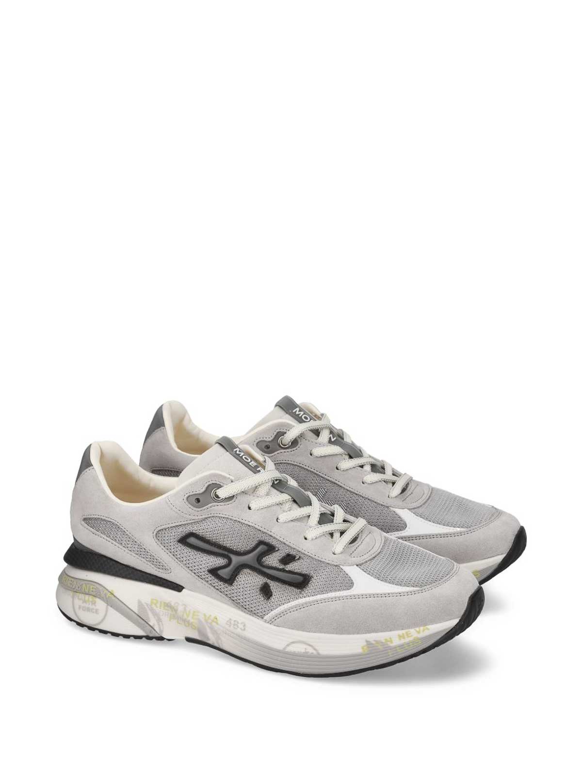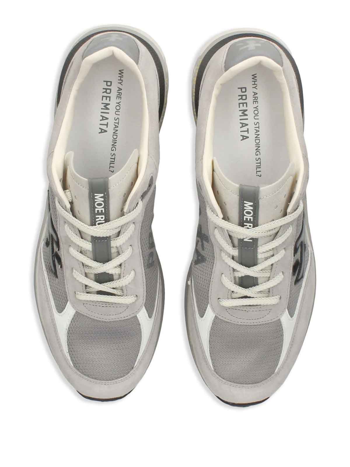 Sneakers Moerun 7304 Farbe: grau Frontverschluss mit Schnürsenkeln flache Sohlenapplikation auf der Zunge mit Logoprint mit seitlichem Logo