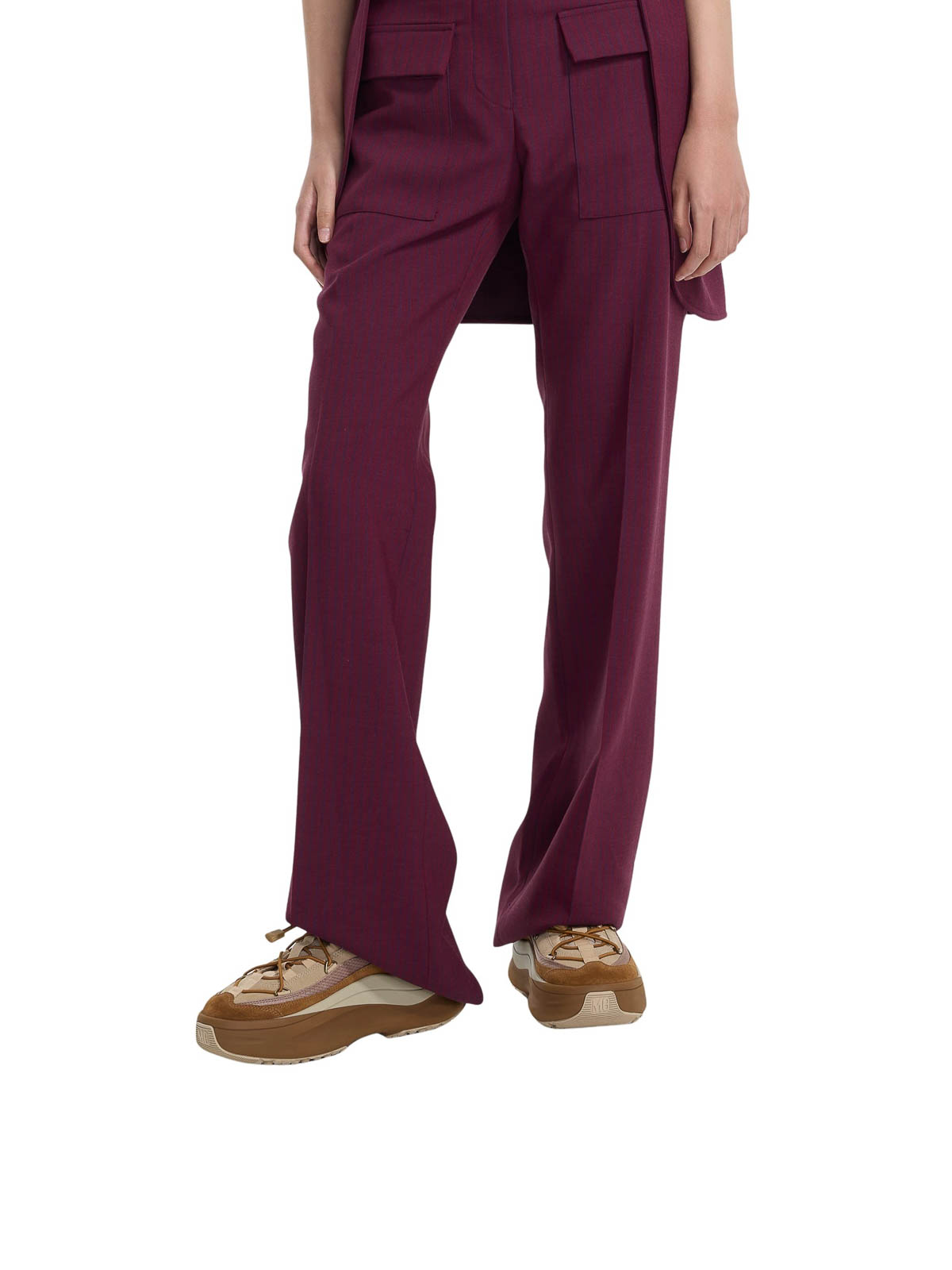 Ein mutiger urbaner Sneaker aus Veloursleder und technischem Stoff in Sand und Beige. Die getäfelte Silhouette mit den sich kreuzenden röhrenförmigen Schnürsenkeln und einem verstellbaren Kordelzug erinnert an die Ästhetik des Weltraumzeitalters. Die profilierte Sohle aus EVA und thermoplastischem Gummi bietet Komfort und Halt.