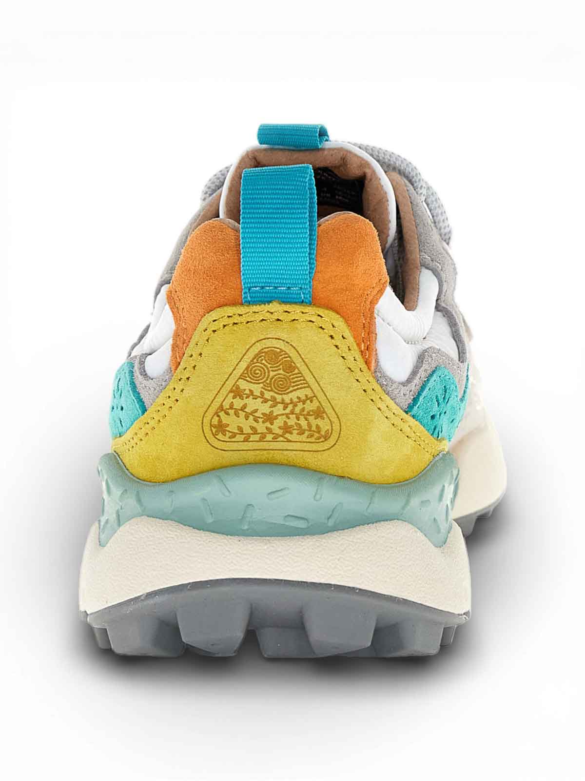 Flower Mountain, Yamano 3 Woman, Sneakers aus Veloursleder und technischem Gewebe, weiß - hellgrau, Sneaker mit einem modernen Design, das Weiblichkeit und Outdoor-Flair verbindet. Das Damenmodell Yamano 3, gefertigt aus technischem Gewebe mit mehrfarbigen Wildledereinsätzen, bereichert durch die ikonisch geformte Öse, inspiriert von der Löwenzahnblüte. Die Schnürung mit Trekkingschnürsenkeln und verstärkten Ösen erinnert an die Ästhetik von Trekkingschuhen und garantiert Stabilität und Widerstandsfähigkeit. Die Innensohle aus natürlichem antibakteriellem Kork sorgt für Komfort und lang anhaltendes Wohlbefinden. die ultraleichte Gummisohle mit gezacktem Profil rundet das Design mit einem dynamischen und funktionellen Aufdruck ab., Obermaterial aus technischem Gewebe mit Einsätzen aus mehrfarbigem Wildleder, ikonisch geformte Öse, verstärkte Ösen, Trek-Schnürsenkel, Innensohle aus antibakteriellem Naturkork, ultraleichte Gummisohle mit gezahnter Lauffläche.
