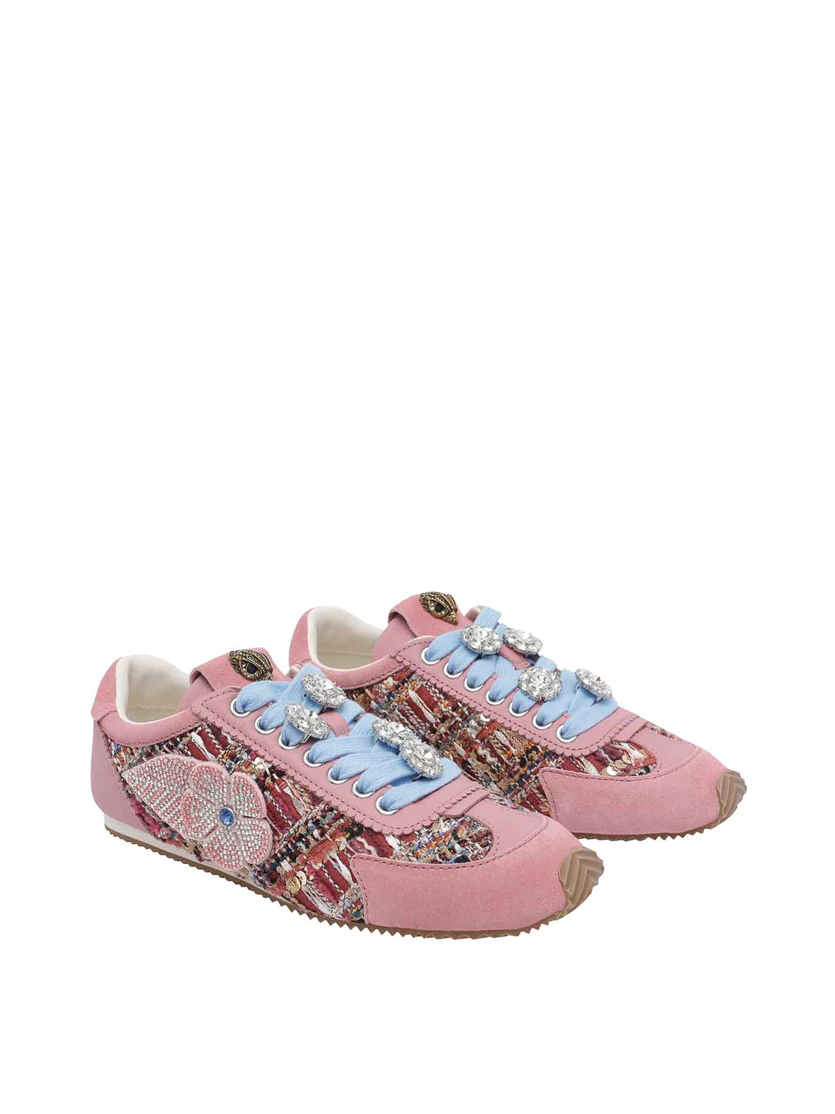 Kurt Geiger Islington Sneakers in Rosa, runde Spitze, seitliche Blumenapplikation, Obermaterial aus Veloursleder