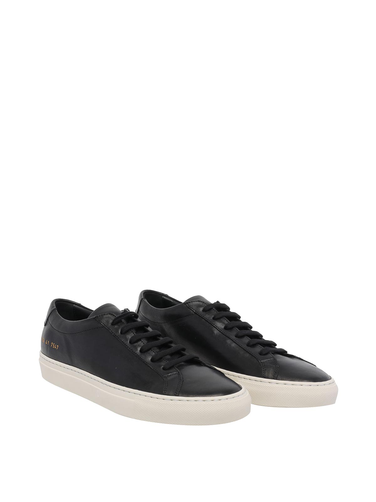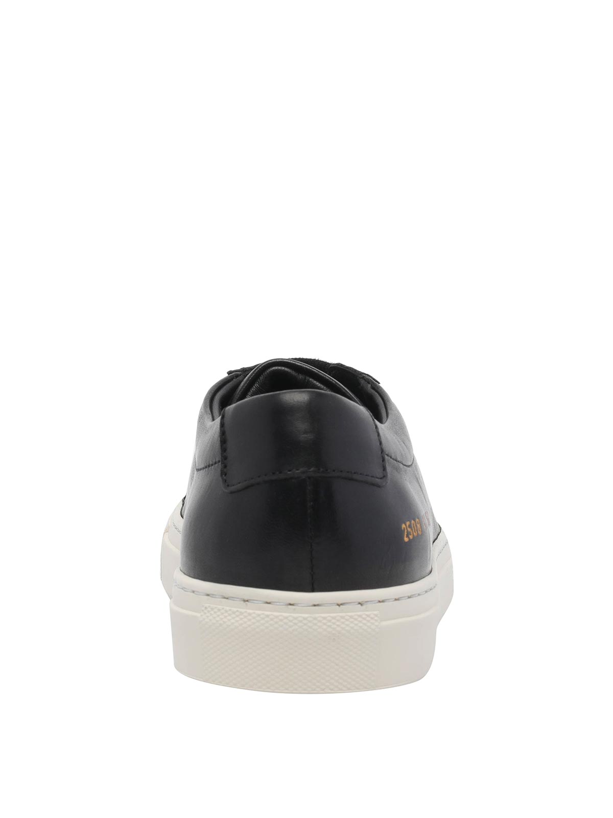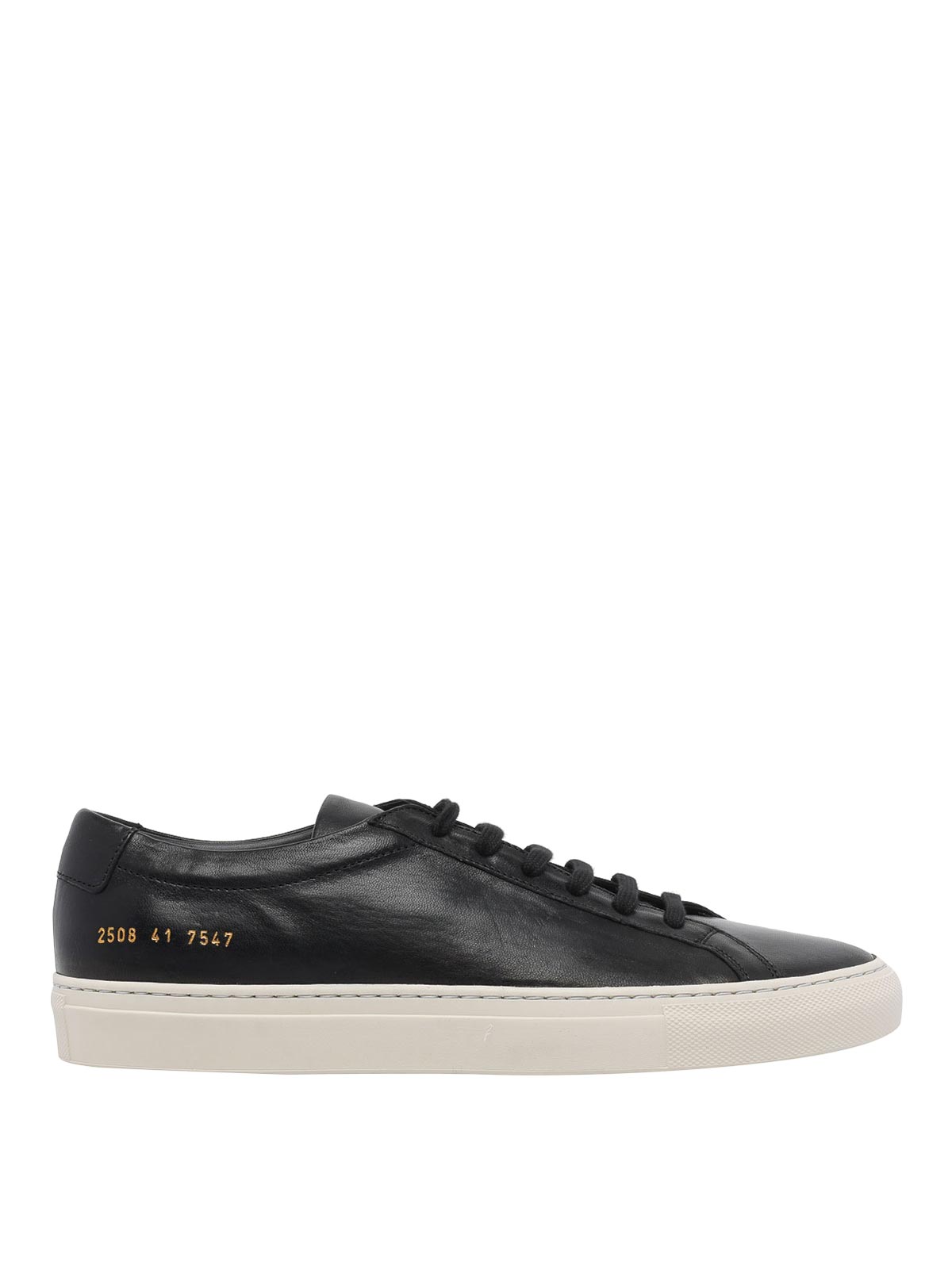 Schwarze Achilles-Sneaker von Common Projects, runde Spitze, seitliches Logo, Obermaterial aus Leder, Schnürverschluss