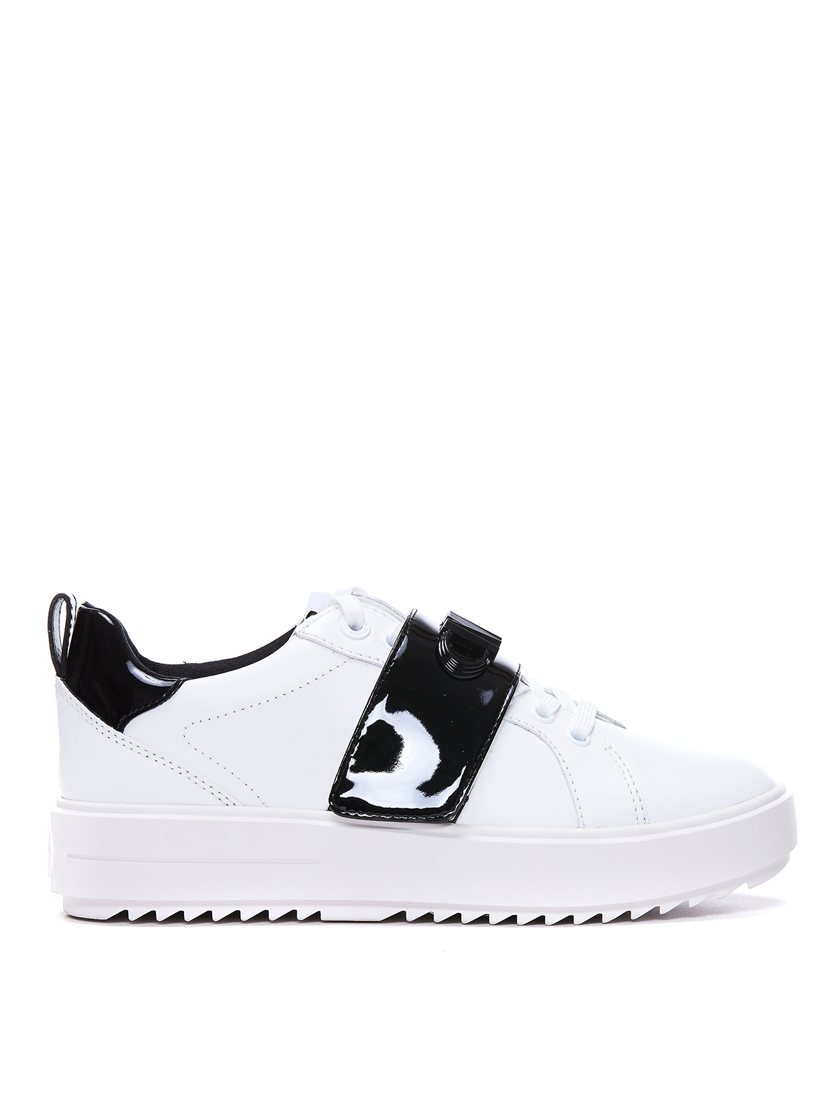 Sneakers, Kordelverschluss und Klettverschluss, Vinylband mit farblich abgestimmtem Logo auf der Vorderseite