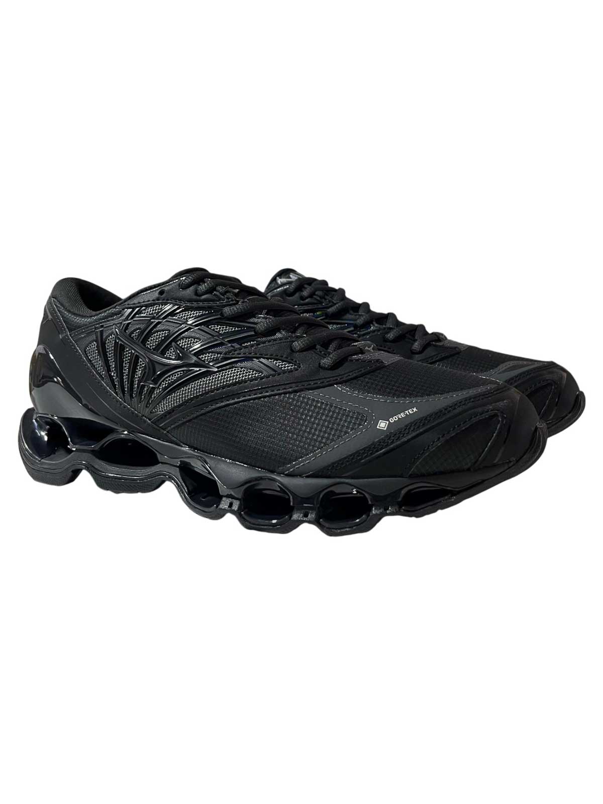 Mizuno Herren Sneaker Wave Prophecy LS GTX Schwarz/J1GC237001 Technischer und Design-Sneaker von Mizuno, entworfen für alle, die maximale Leistung und modernen Stil suchen. Der Wave Prophecy LS GTX kombiniert futuristische Ästhetik mit den fortschrittlichsten Technologien der Marke. Das Obermaterial aus technischem Mesh und synthetischen Einsätzen garantiert Atmungsaktivität und Halt, während die Gore-Tex-Membran für absolute Wasserdichtigkeit unter allen Bedingungen sorgt. Die ikonische Infinity-Wave-Sohle bietet außergewöhnliche Dämpfung und Reaktivität, begleitet von einem starken, komplett schwarzen Look. Obermaterial aus technischem Mesh und synthetischem Material, wasserdichte und atmungsaktive Infinity-Wave-Sohle mit Infinity-Wave-Technologie für maximale Dämpfung und Hitzestabilität versiegelte Details für mehr Widerstandsfähiges, farblich abgestimmtes Mizuno-Logo, bequeme Passform, Innenfutter, griffige Gummisohle, hergestellt in Vietnam