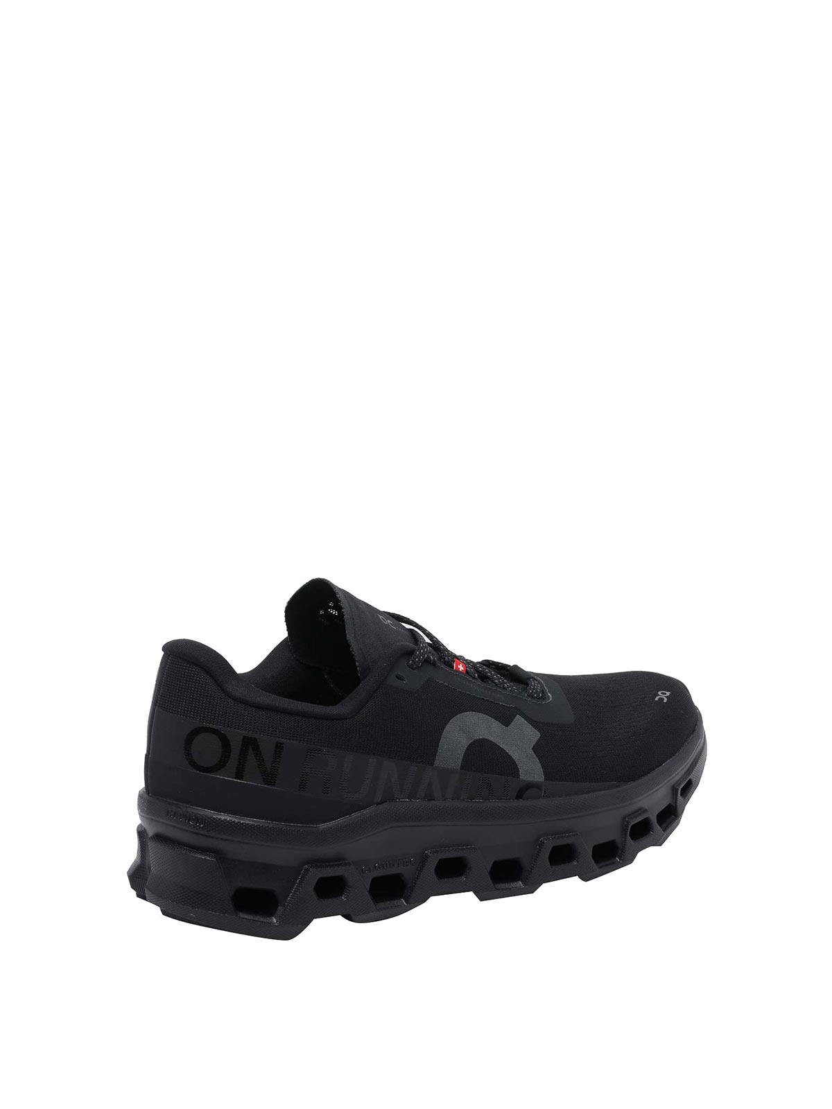 On Black Cloudmonster 1 Sneakers, Obermaterial aus Stoff, Schnürverschluss, runde Spitze, seitliches Logo