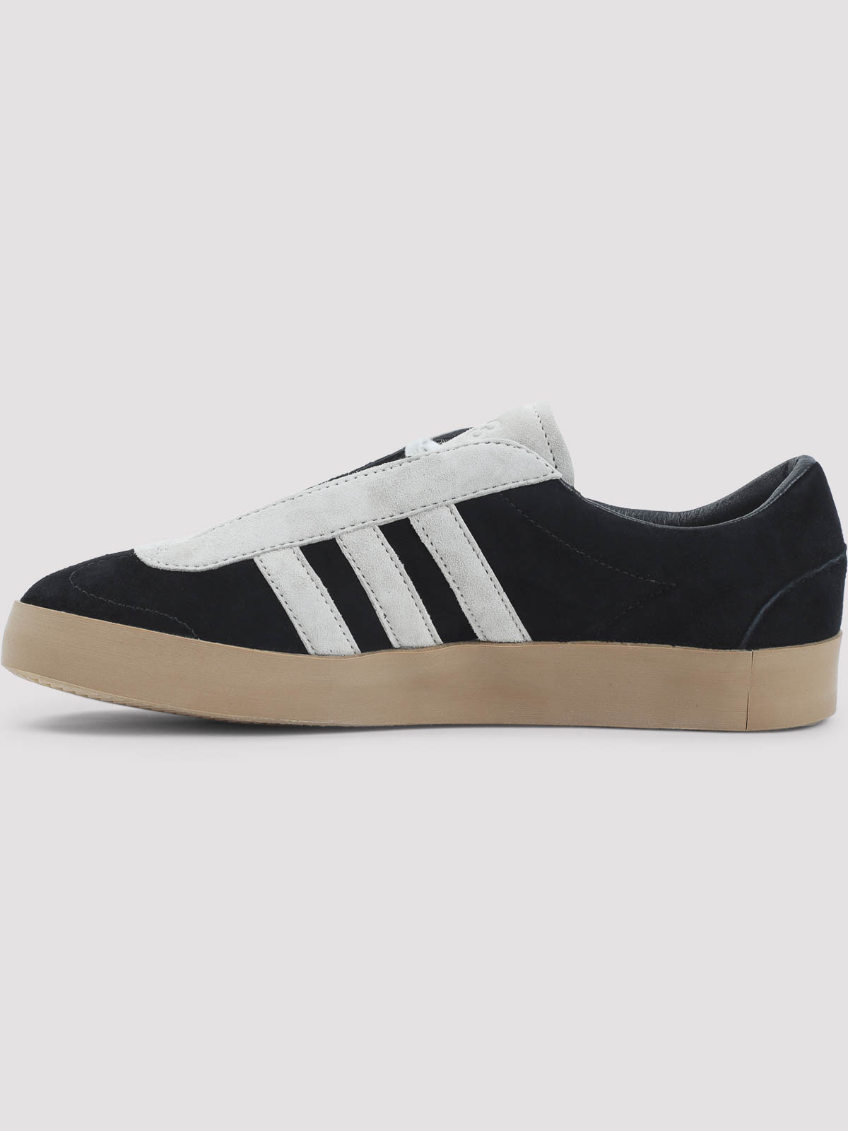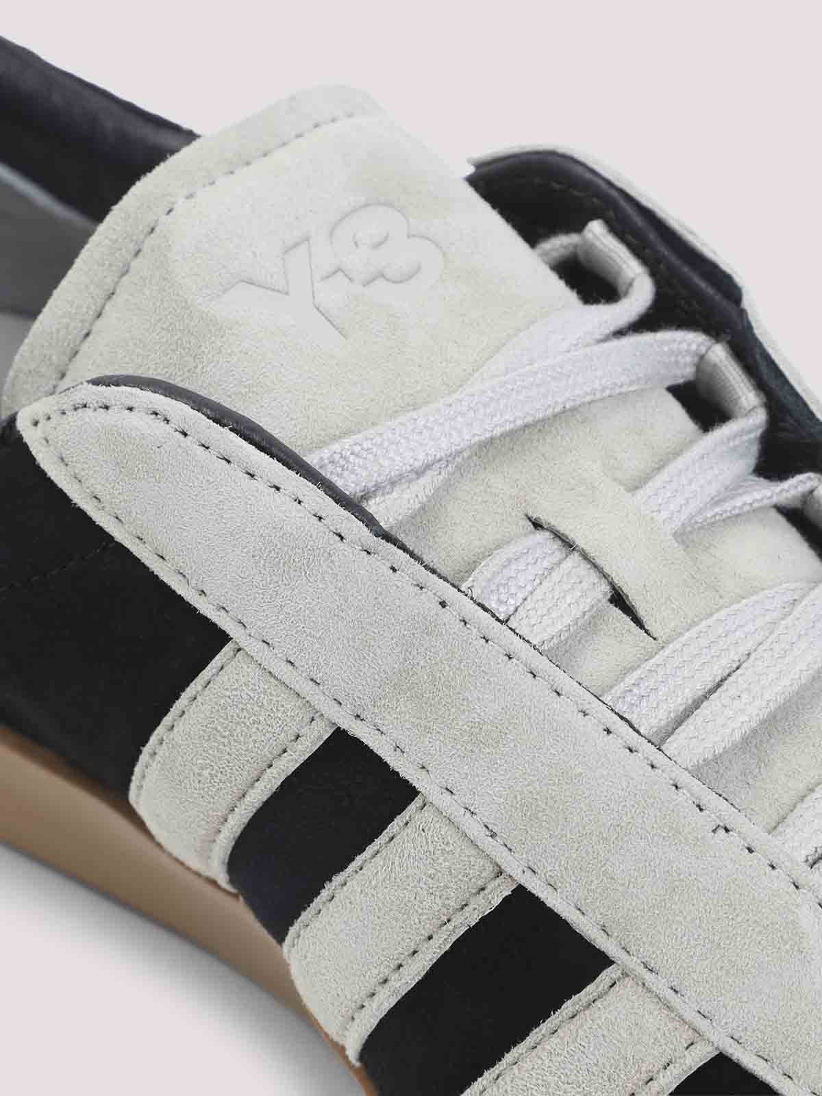 Y-3 Gazelle Sneakers aus schwarzem Veloursleder. Sneakers aus reinem schwarzem Veloursleder, runde Spitze, grauer Schnürverschluss oben, graviertes Logo auf der Zunge, graue Zunge, graue Details oben, graue Seitenriemen, braune Gummisohle.