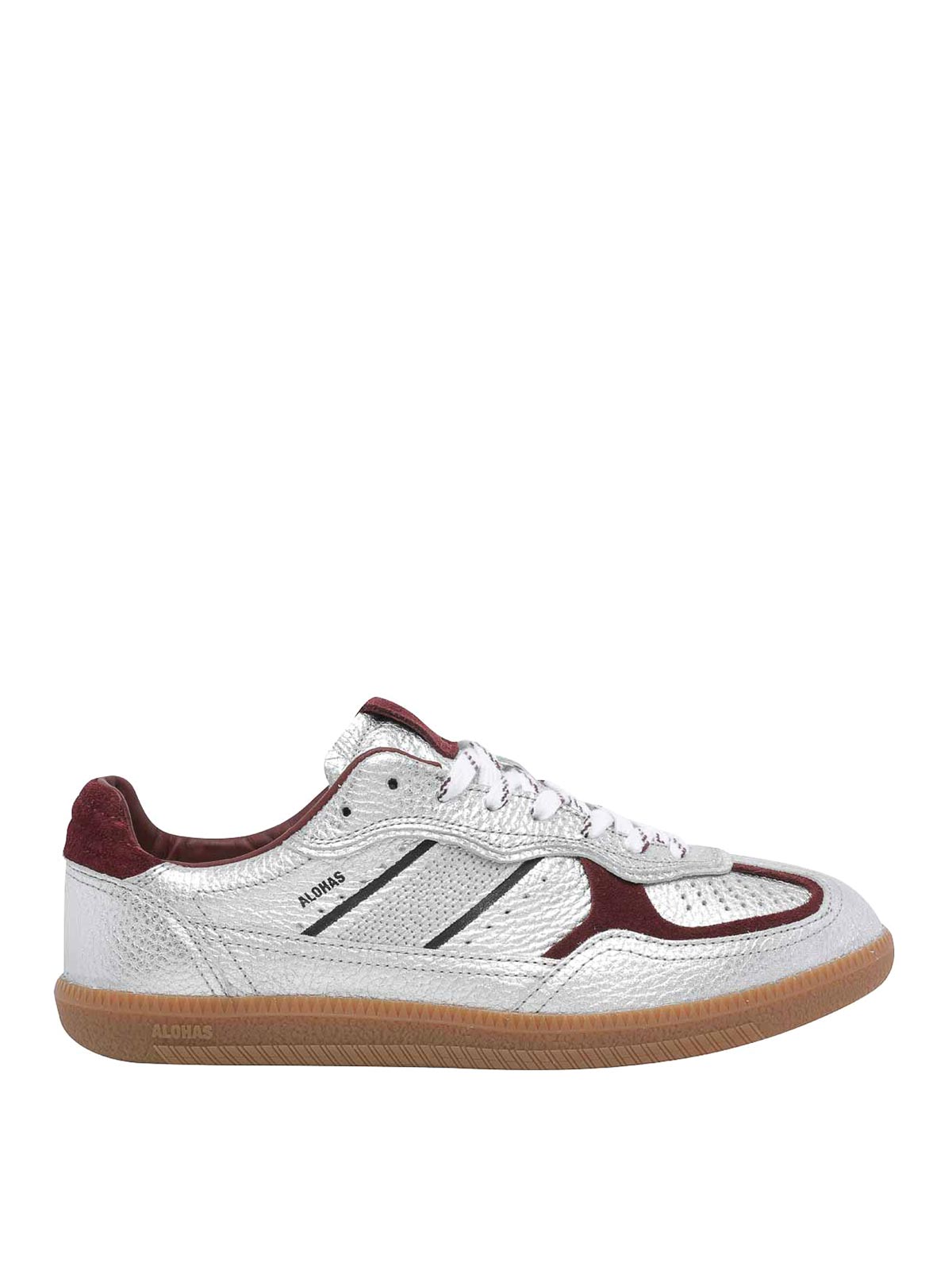 Alohas silberne tb.490 Sneakers, runde Spitze, Obermaterial aus Leder, Schnürverschluss, seitliches Logo