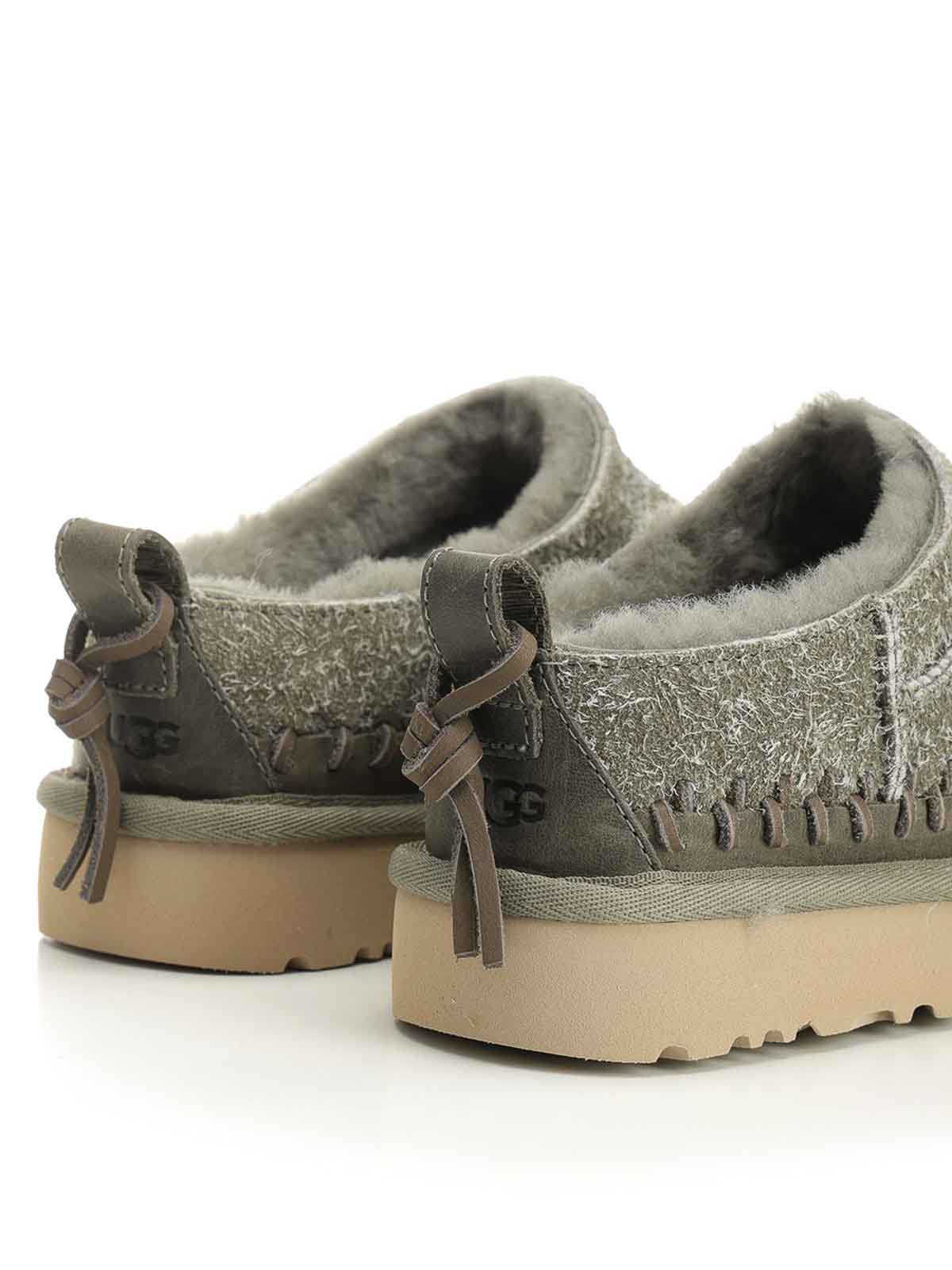 Klassische Micro-Biarritz-Stiefel von UGG mit weichen Ziernähten, einer Schleife, einer Zuglasche an der Vorderseite, einem Schutzblech, einer Zehenkappe, einem Zuckerrohr-Ausgang, einem Saum, einer Hitze, einem geprägten Ugg-Logo und einem gewebten Etikett mit dem Ugg-Logo auf der