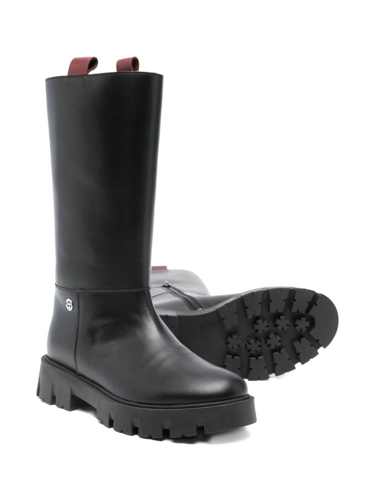 Ausstattung: schwarze Lederstiefel mit seitlichem Reißverschluss und runder Zehenzunge