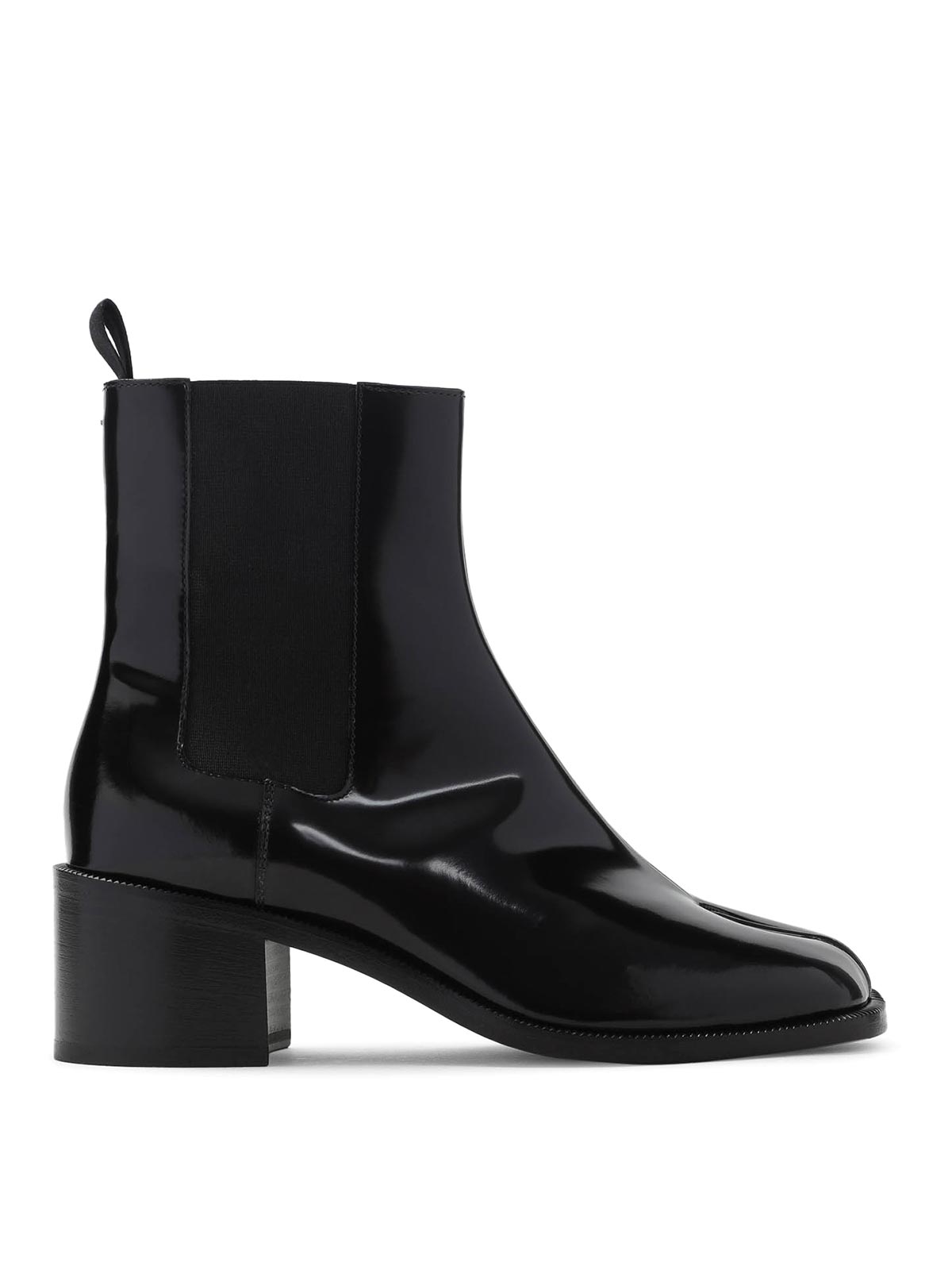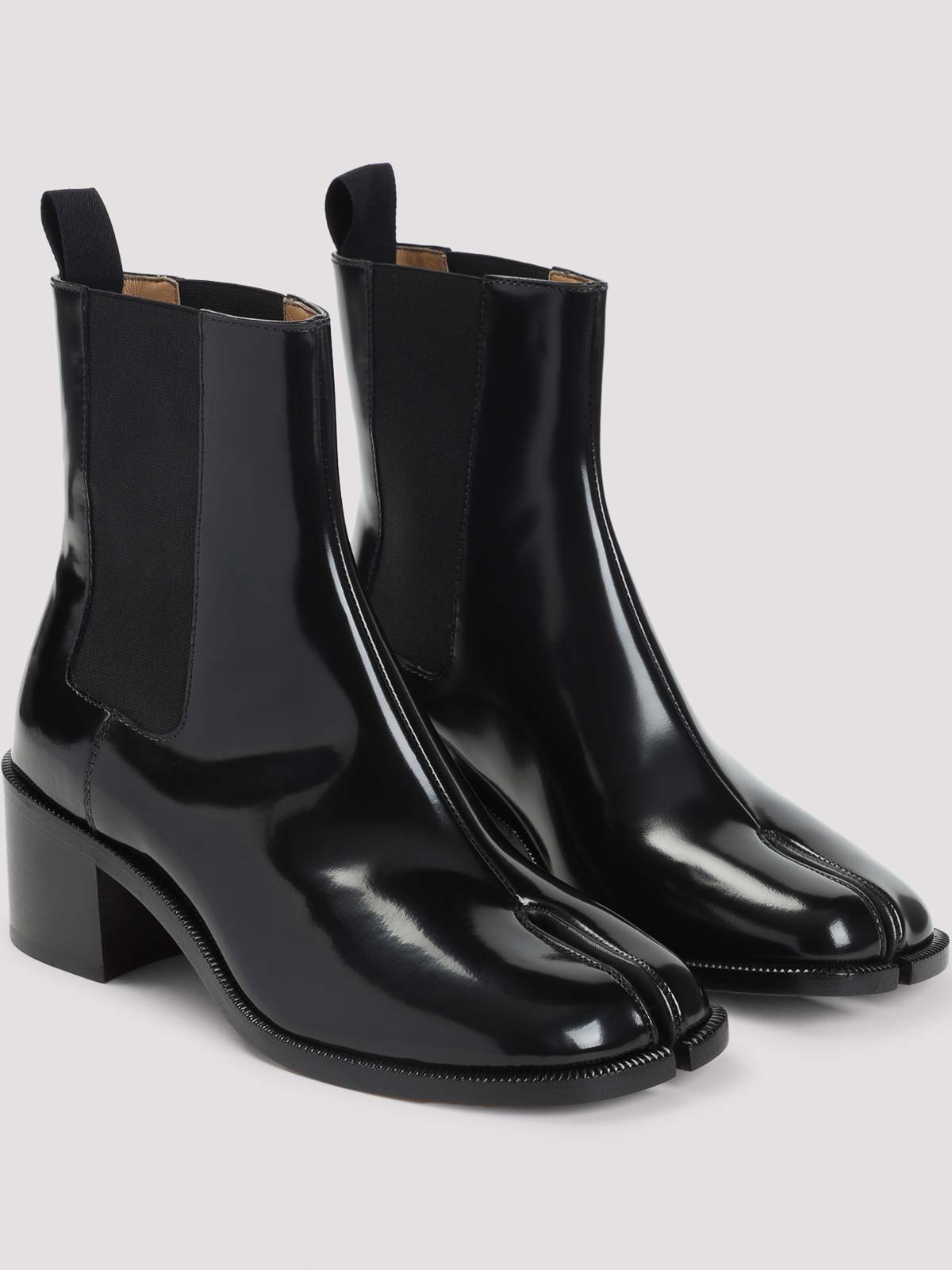 Maison Margiela Schwarzer Tabi City Chelsea H-Stiefel, reiner schwarzer Stiefel, charakteristische Tabi-Zehenpartie, Knöchel, hohe Seite, elastisch, tonal, breit, tonal