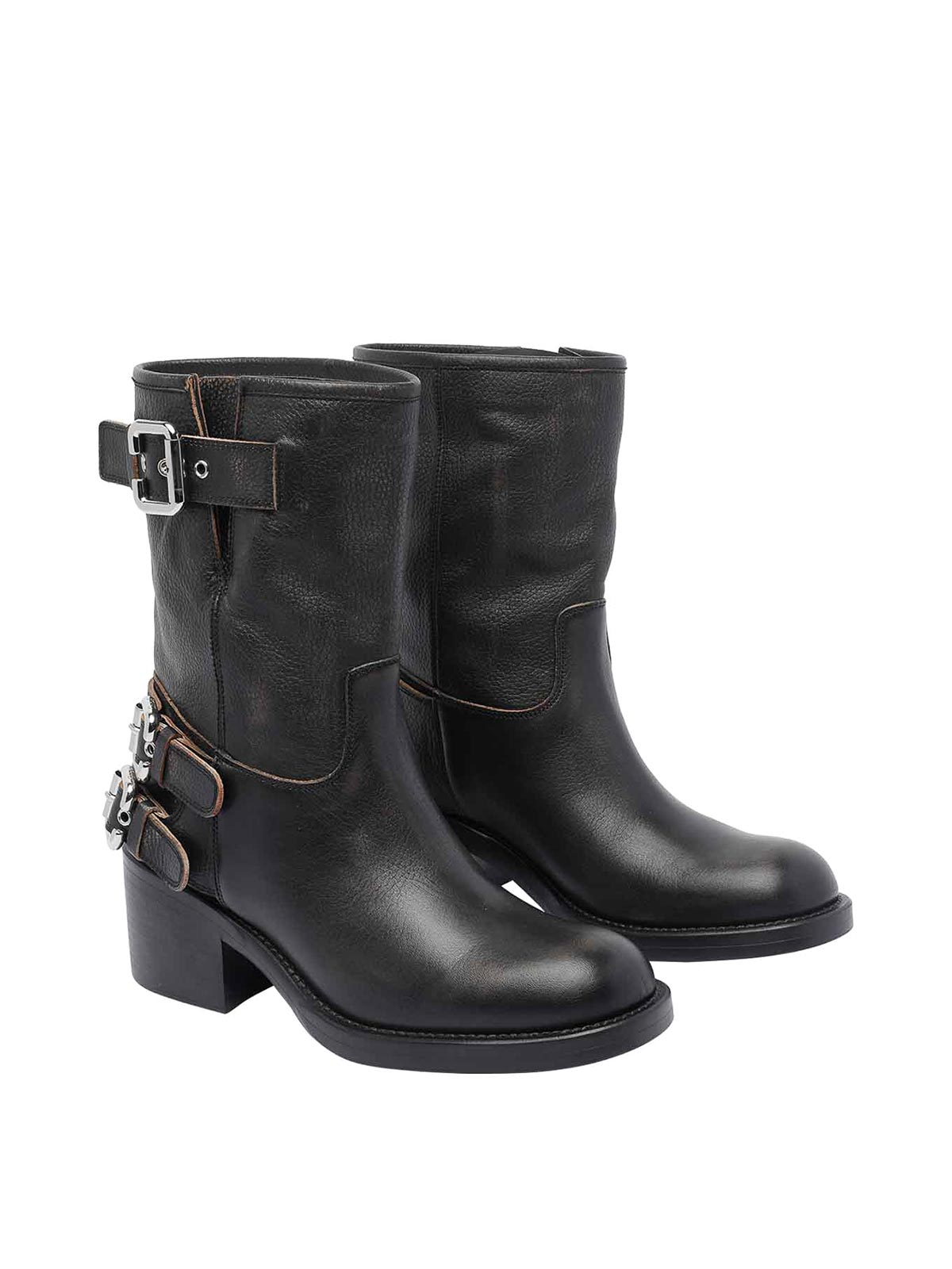 Schwarze Dakota-Stiefeletten von Chloe, runde Spitze, seitliches Schnallendetail, Obermaterial aus Leder