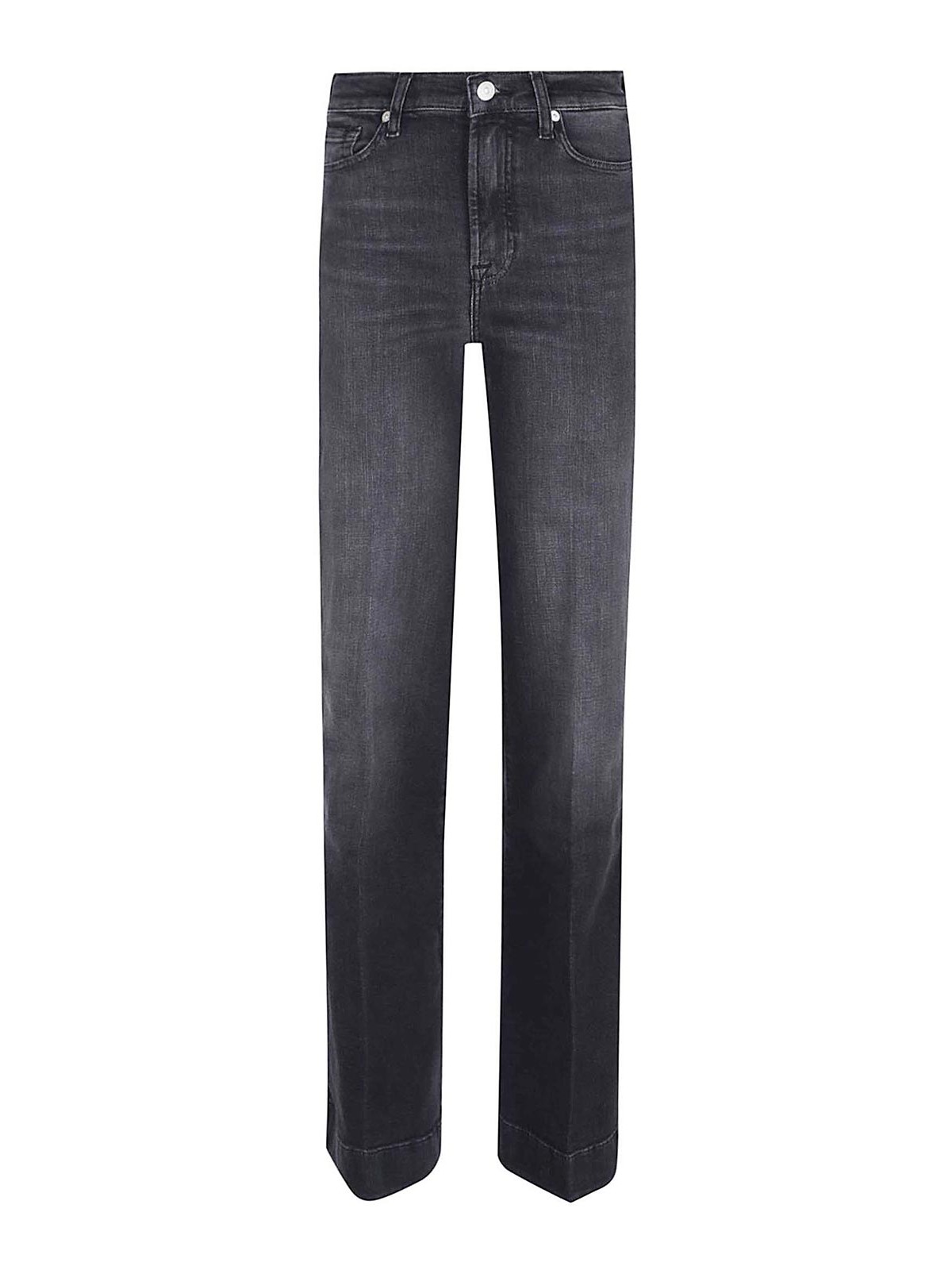 Jeans aus Stretch-Baumwolle von 7 für alle Herren, hohe Taille, Reißverschluss und Knopfverschluss, Gürtelschlaufen, fünf Taschen, ausgestellte Passform.