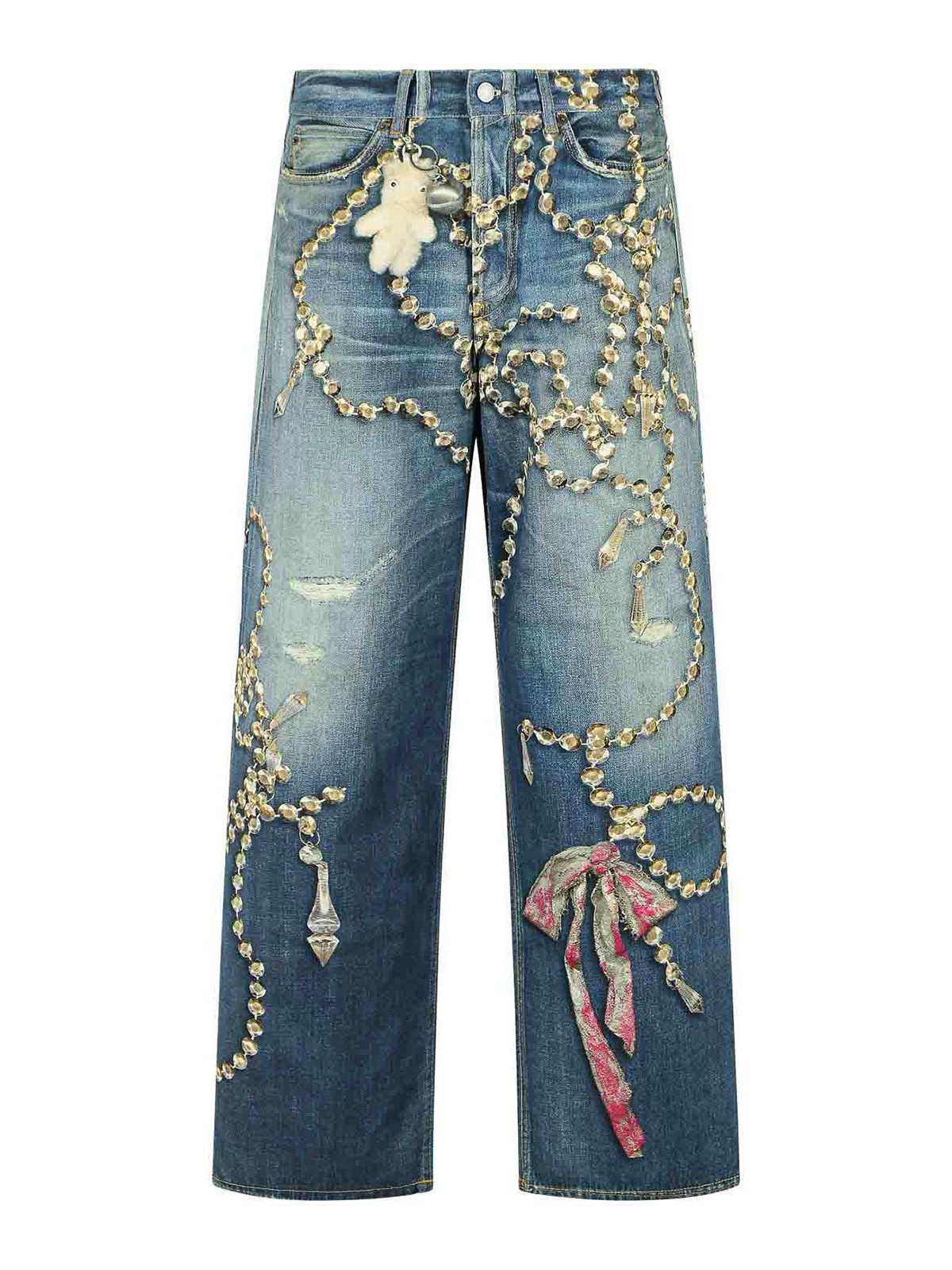 Lockere Passform, niedriger oder mittlerer Bund, superweites Bein, saisonaler „Trompe-l'oeil“ -Print, fünf Taschen