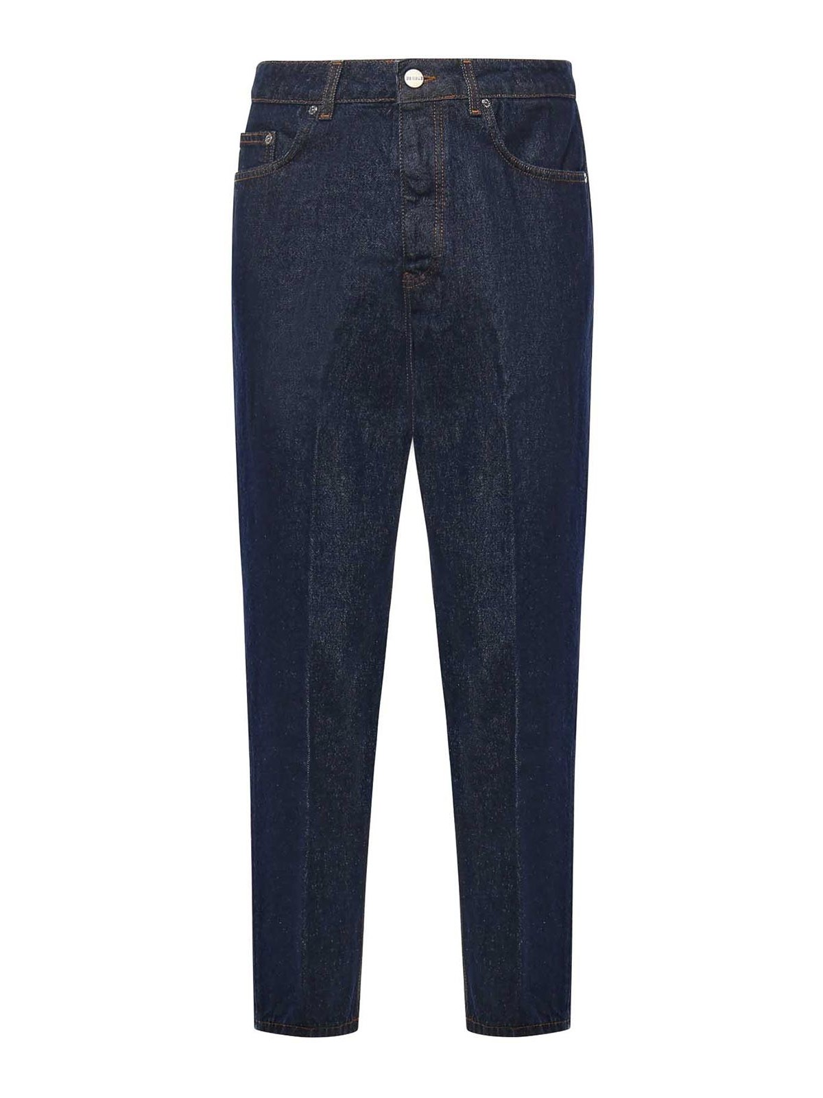 Hergestellt aus Baumwolldenim, 5 Taschen, Taille mit Gürtelschlaufen, Bein mit Bügelfalte, hergestellt in Italien, die auf dem Foto abgebildete Größe ist 30, Farbe: blau