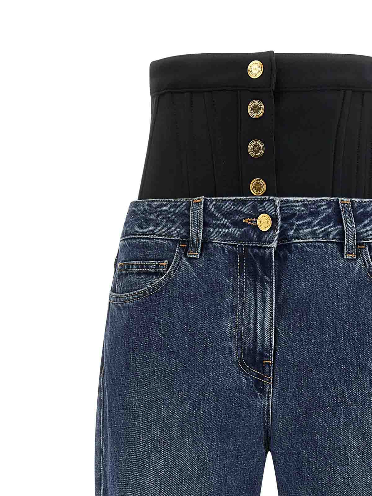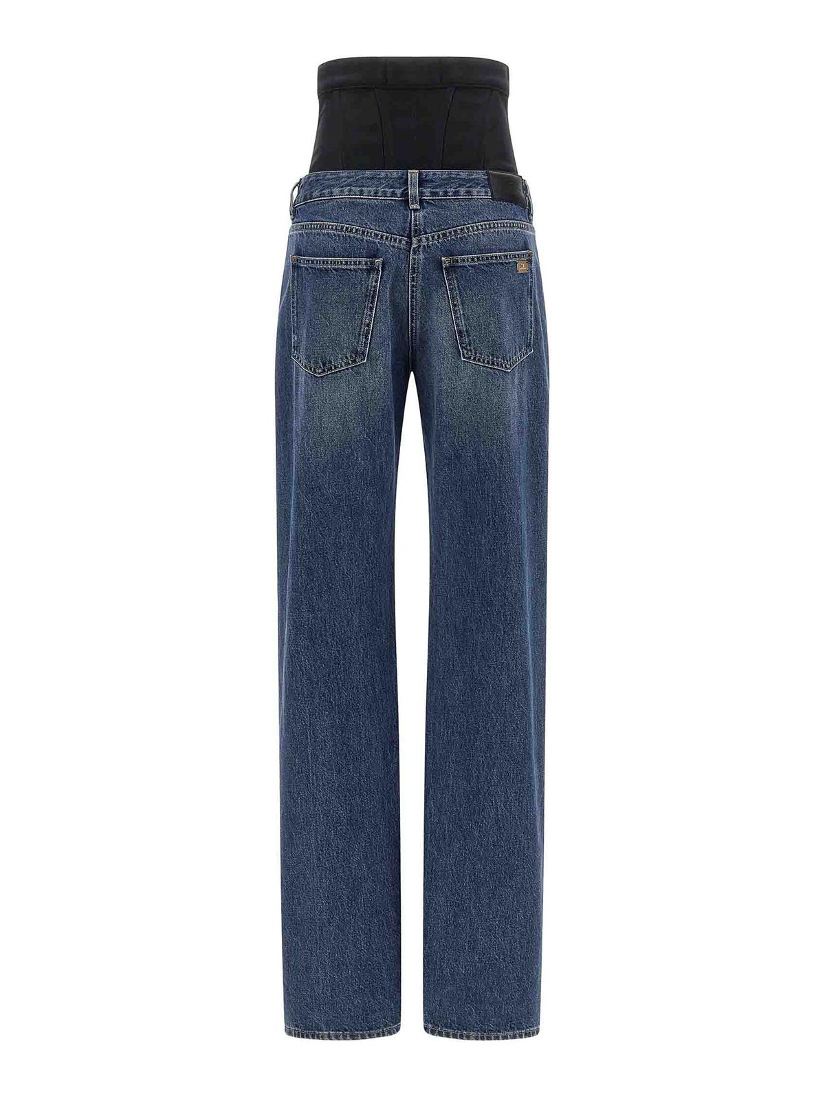Stonewash-Jeans aus Baumwolldenim mit geradem Bein, Frontreiß- und Knopfverschluss, fünf Taschen, Bustier-Einsatz aus technischem Gewebe mit Druckknopfverschluss auf der Vorderseite und Logo-Etikett auf der Rückseite.