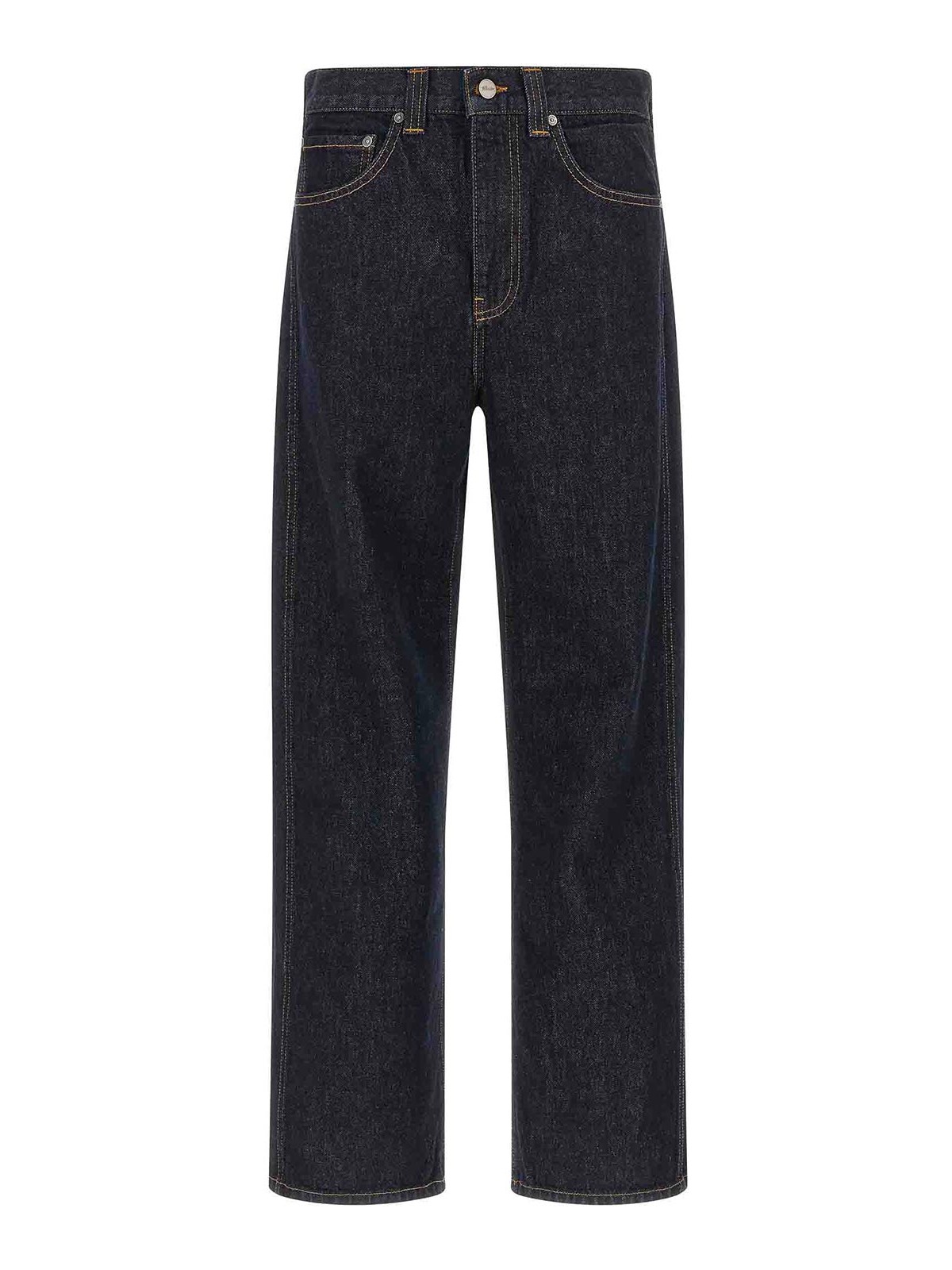 Bonnie' Jeanshose aus Baumwolle mit Kontrastnähten, weitem und geradem Bein, fünf Taschen, Reißverschluss und Knopfverschluss auf der Vorderseite.