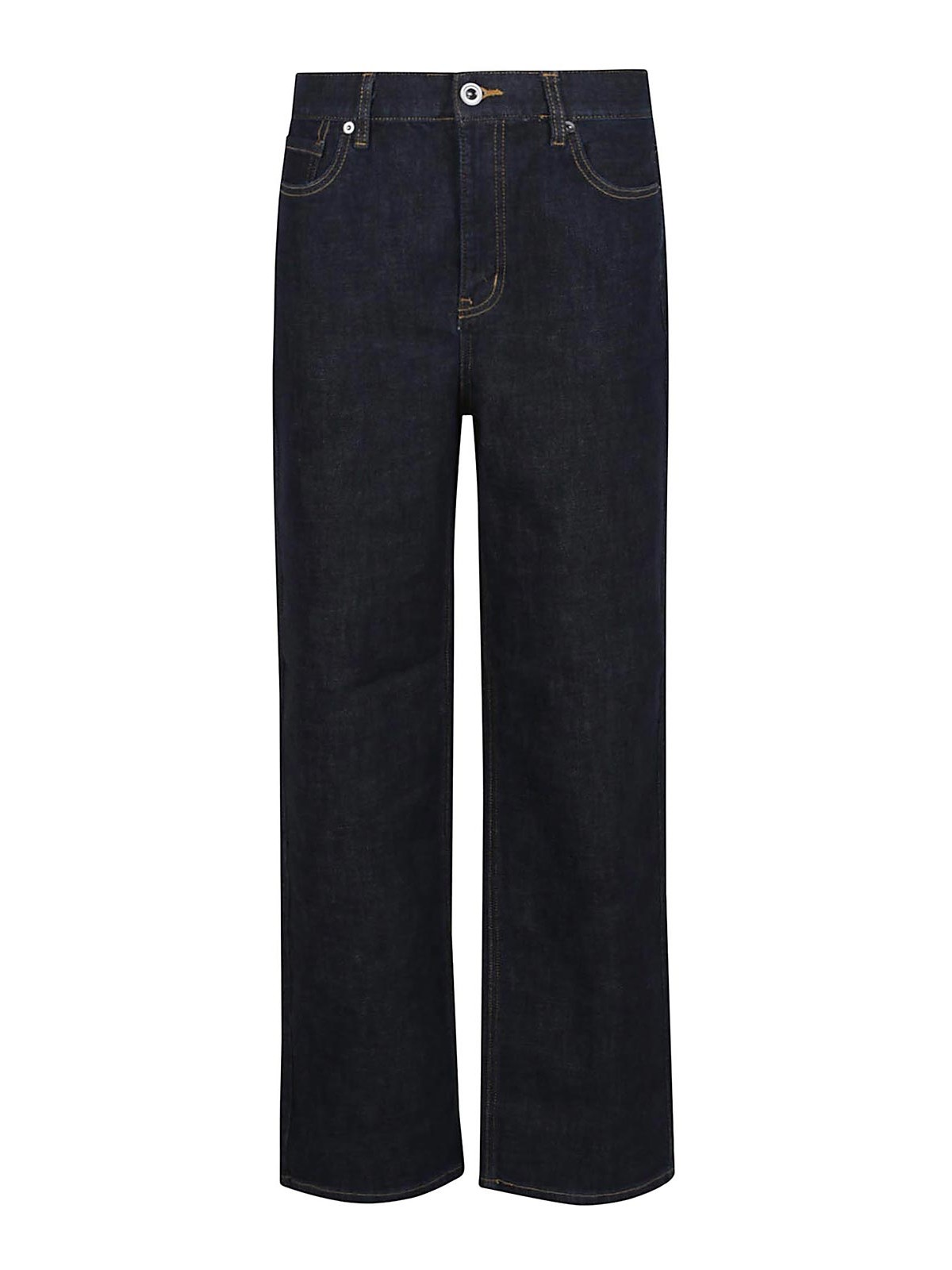 Blau Gerades Bein. Verschluss mit Knöpfen Hoher Bund Klassisches Five-Pocket-Design
