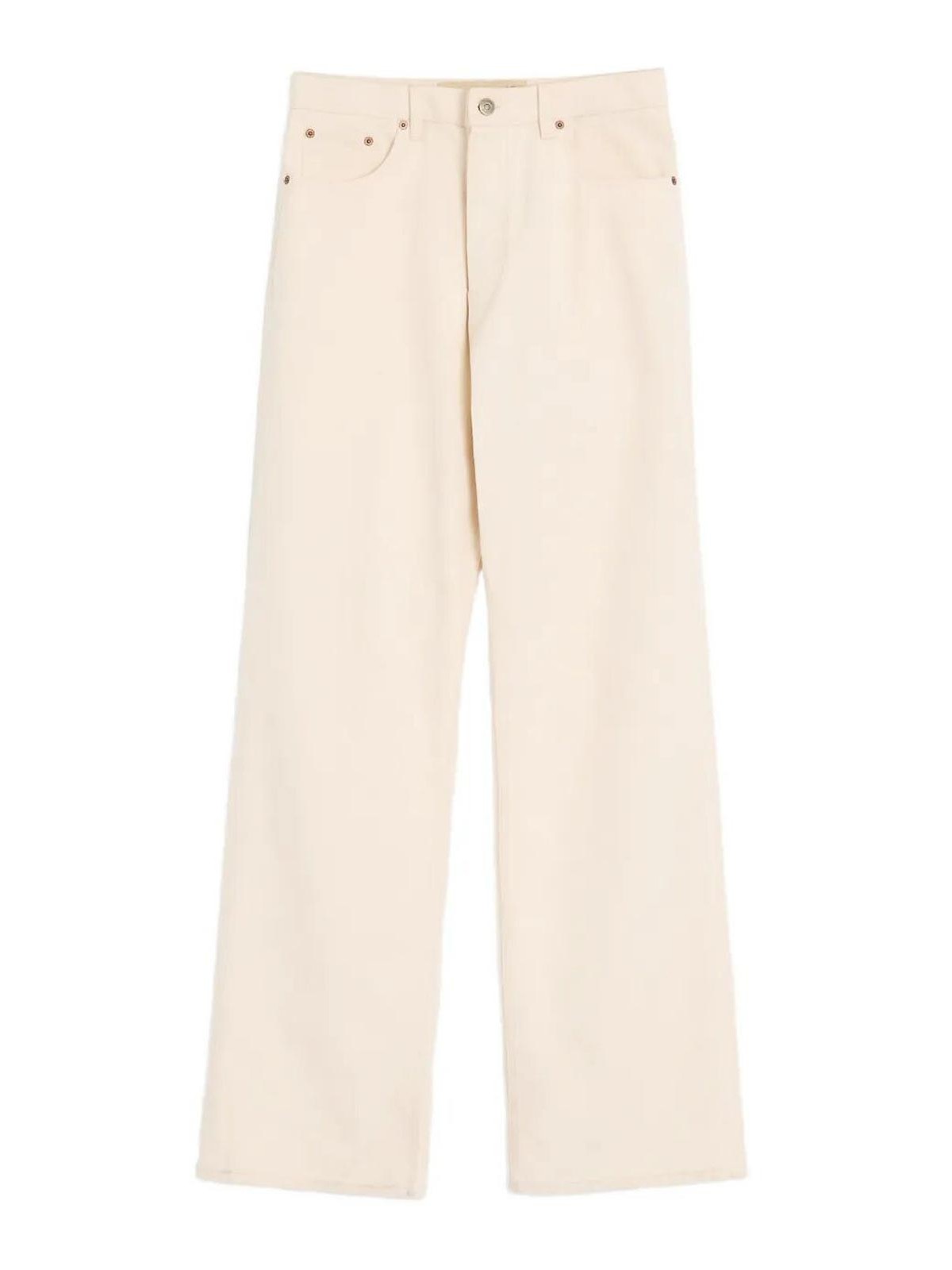 Herrenjeans mit fünf Taschen aus hochwertigem Denim, bereichert durch das VGold-Detail, das für einen ikonischen Touch sorgt. Die elfenbeinfarbene Farbe verleiht dem Modell eine moderne und raffinierte Ästhetik.