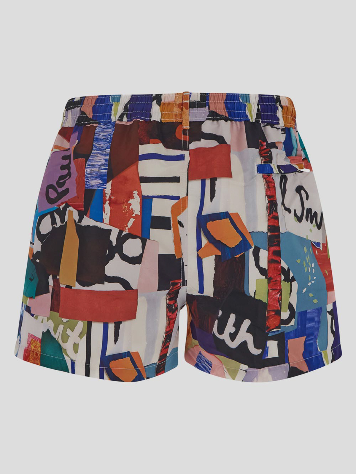 Paul Smith Badeshorts aus mehrfarbigem Polyester mit durchgehendem Papiercollage-Print