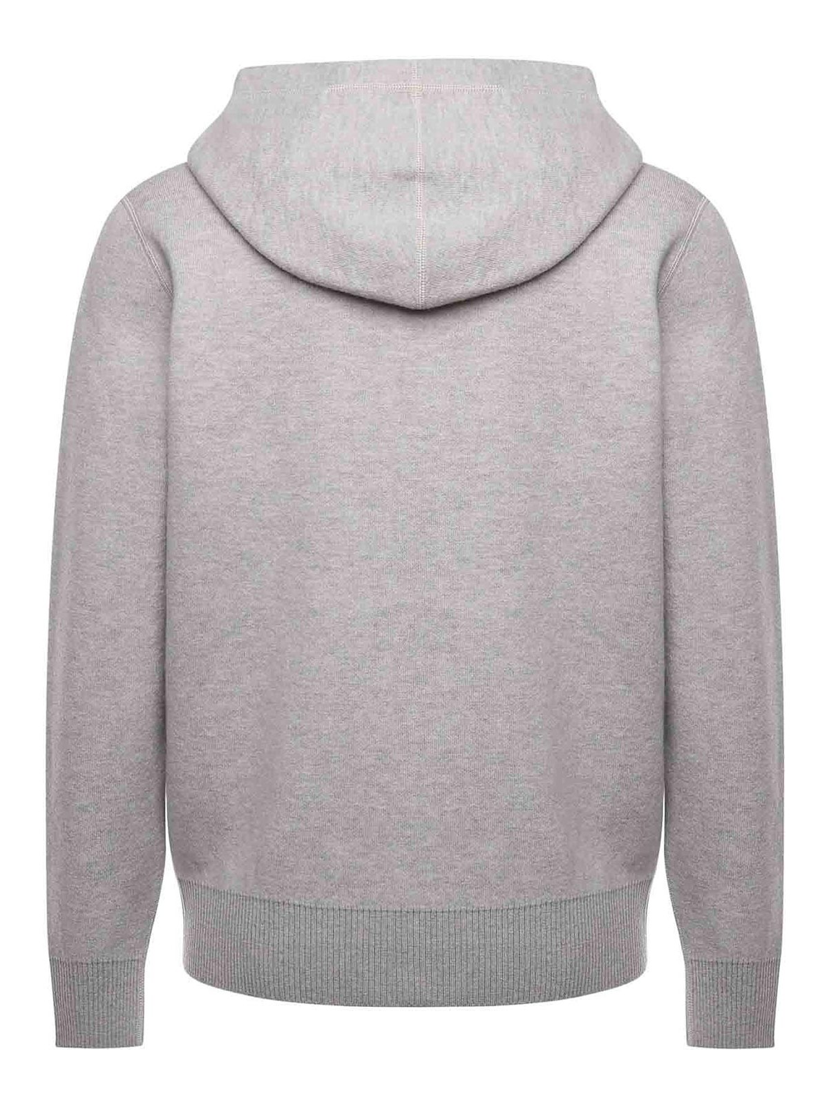 Hergestellt aus reiner Wolle, Frontreißverschluss, Kapuzenkragen, Kängurutasche, gerippte Manschetten und Saum, hergestellt in Italien, Größe auf dem Foto ist M, Farbe: hellgrau, sand